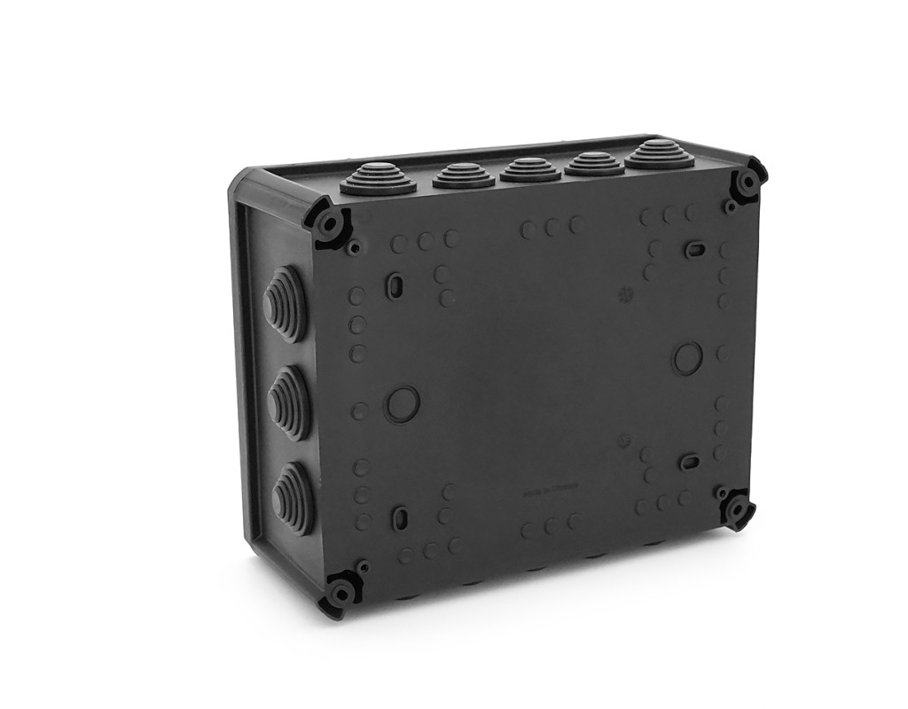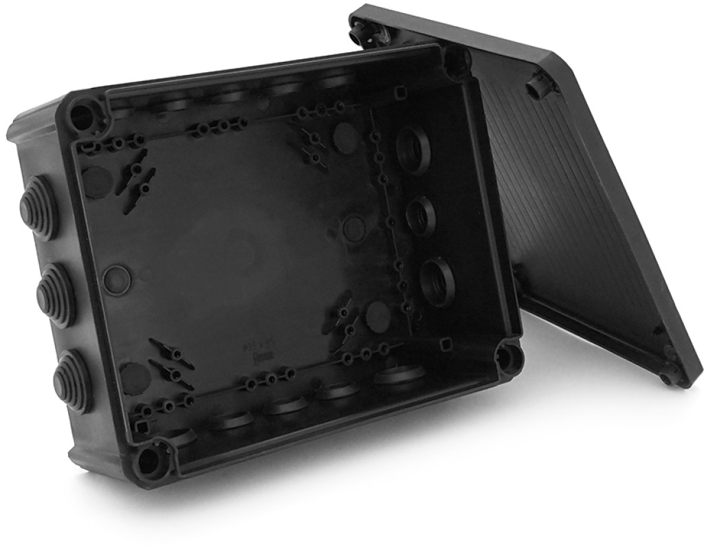 Коробка розподільна герметична / зовнішня 240х190х95мм; IP66 пластик; (РР) 10 гермовводів; чорна / антрацит