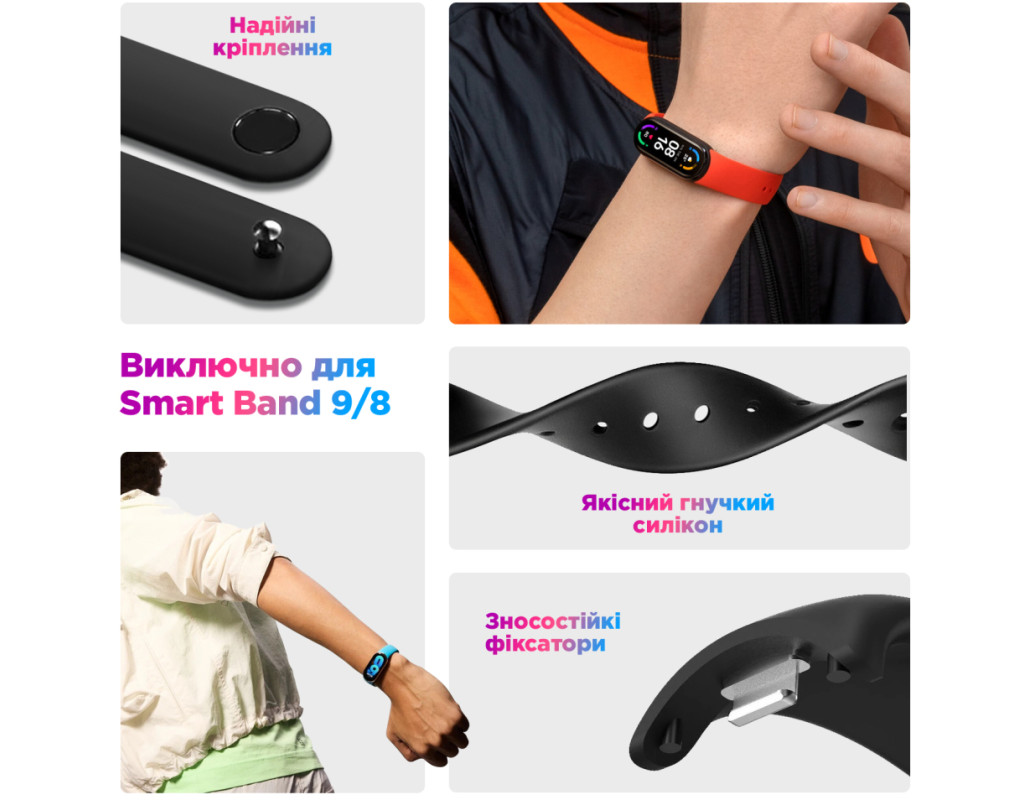 Висока якість Міцний і зручний ремінець виготовлений із водовідштовхувального матеріалу. Він витримує великі навантаження, легко відмивається від бруду та завжди зберігає презентабельний зовнішній вигляд. З ним користувач може відстежувати рівень активності в будь-яких умовах.