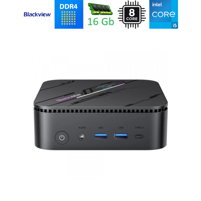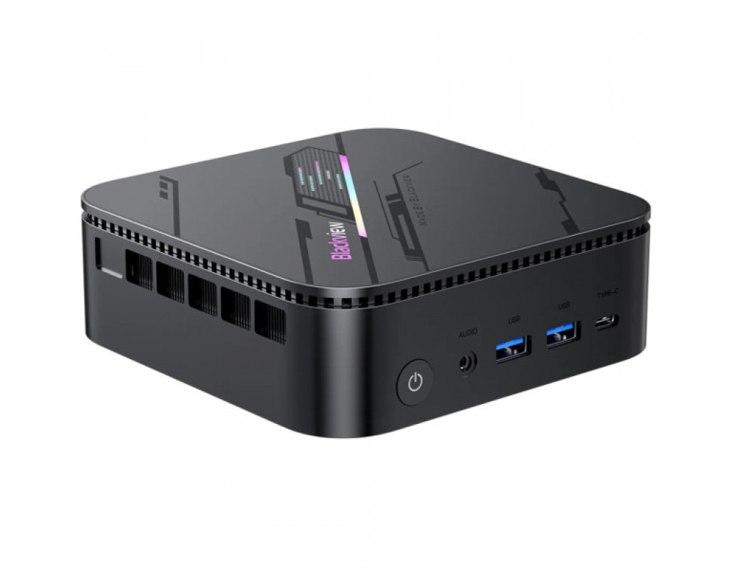 Blackview Mini PC MP100 PRO – персональний комп’ютер компактного розміру для різних сценаріїв використання – він підійде як для виконання щоденних робочих завдань, так і для ком’ютерних ігор чи перегляду відео безкомпромісної якості. Комп’ютер підтримує кріплення VESA. Встановлюйте його на задню панель монітора та зберігайте свій робочий простір незагромадженим та добре організованим. Оснащений потужним процесором Intel Core 12-го покоління, цей мініатюрний комп'ютер допоможе вам отримати високий результат при виконанні різних задач. 16 ГБ швидкої оперативної пам’яті, яку можна розширити до 64 ГБ, дозволяють швидко завантажувати великі файли та отримувати до них доступ. Встановлений твердотільний накопичувач об’ємом 1 ТБ Вдосконалена система охолодження, яка складається з вентилятора, мідної теплової трубки та високопродуктивного радіатора, тихо та ефективно відводять тепло з внутрішніх компонентів комп’ютера, підтримуючи постійну температуру до 40°С. При роботі комп’ютера рівень шуму не перевищуватиме 39 дБ. Шість USB Type-А портів, два з яких працюють зі швидкістю до 10 Гбіт/с, дозволяють під’єднати необхідне периферійне обладнання. Підключайте до комп’ютера Blackview Mini PC MP100 PRO одночасно три монітори. Він оснащений роз’ємами HDMI, DisplayPort та портом USB Type-C, який підтримує швидкість обміну даними до 10 Гбіт/с та відтворення відео 4K 60 Гц у режимі DisplayPort. Використовуйте технологію Bluetooth та встановлюйте з’єднання із пристроями, які її підтримують. Підключайтесь до мережі за допомогою інтерфейсу Gigabit Ethernet або бездротової технології Wi-Fi. Компактний розмір та низька вага. лише 492 грами, дозволяють легко транспортувати комп’ютер. |
