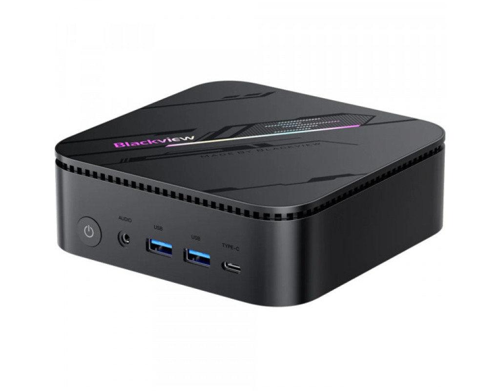 Blackview Mini PC MP100 PRO – персональний комп’ютер компактного розміру для різних сценаріїв використання – він підійде як для виконання щоденних робочих завдань, так і для ком’ютерних ігор чи перегляду відео безкомпромісної якості. Комп’ютер підтримує кріплення VESA. Встановлюйте його на задню панель монітора та зберігайте свій робочий простір незагромадженим та добре організованим. Оснащений потужним процесором Intel Core 12-го покоління, цей мініатюрний комп'ютер допоможе вам отримати високий результат при виконанні різних задач. 16 ГБ швидкої оперативної пам’яті, яку можна розширити до 64 ГБ, дозволять швидко завантажувати великі файли та отримувати до них доступ. Встановлений твердотільний накопичувач об’ємом 512 ГБ пропонує достатньо місця для зберігання необхідної інформації. Blackview Mini PC MP100 PRO підтримує до двох M.2 NVMe об’ємом по 2 ТБ кожен, що дає змогу легко збільшити об'єм сховища. Вдосконалена система охолодження, яка складається з вентилятора, мідної теплової трубки та високопродуктивного радіатора, тихо та ефективно відводять тепло з внутрішніх компонентів комп’ютера, підтримуючи постійну температуру до 40°С. При роботі комп’ютера рівень шуму не перевищуватиме 39 дБ. Шість USB Type-А портів, два з яких працюють зі швидкістю до 10 Гбіт/с, дозволяють під’єднати необхідне периферійне обладнання. Підключайте до комп’ютера Blackview Mini PC MP100 PRO одночасно три монітори. Він оснащений роз’ємами HDMI, DisplayPort та портом USB Type-C, який підтримує швидкість обміну даними до 10 Гбіт/с та відтворення відео 4K 60 Гц у режимі DisplayPort. Використовуйте технологію Bluetooth та встановлюйте з’єднання із пристроями, які її підтримують. Підключайтесь до мережі за допомогою інтерфейсу Gigabit Ethernet або бездротової технології Wi-Fi. Компактний розмір та низька вага. лише 492 грами, дозволяють легко транспортувати комп’ютер. |