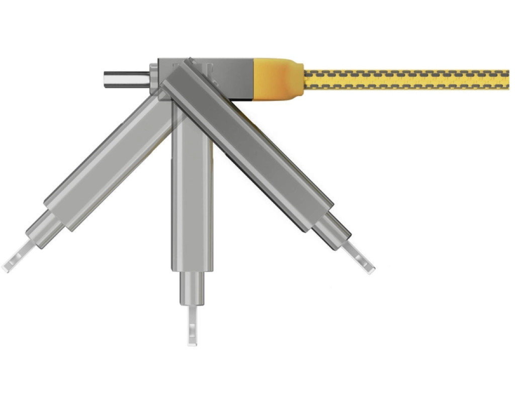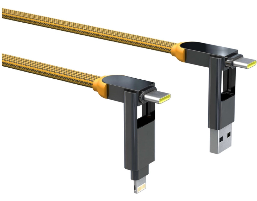 Тип - кабель, Тип конектора 1 - Lightning, USB Type-C, micro USB, USB, Тип конектора 2 - micro USB, Lightning, USB Type-C, довжина - 3 м, Металевий корпус, 200 плетених мідних дротів, магніти N52 Швидкість передачі даних 480 Мбіт/с/60Мбіт/с, Колір - жовтий