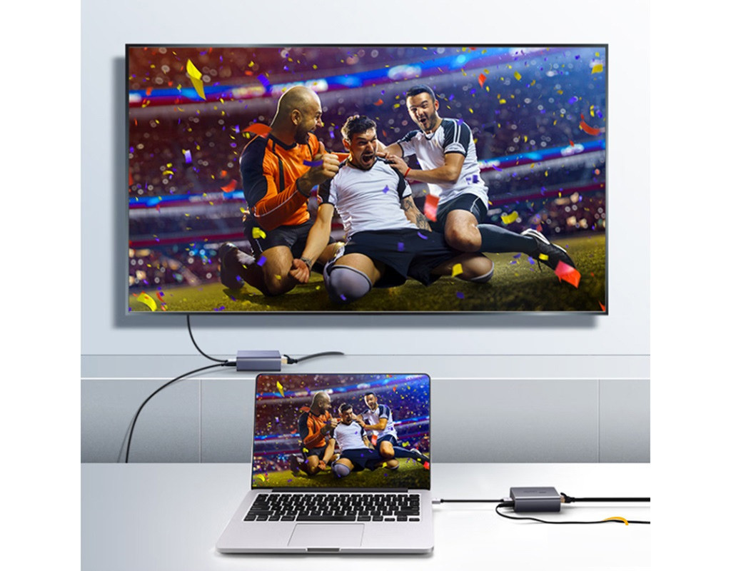 Застосування Підключайте джерело сигналу (ПК, ноутбук, приставку, медіаплеєр) до телевізора, проєктора або монітора в іншій кімнаті, офісі або конференц-залі без складної прокладки дорогих HDMI-кабелів.