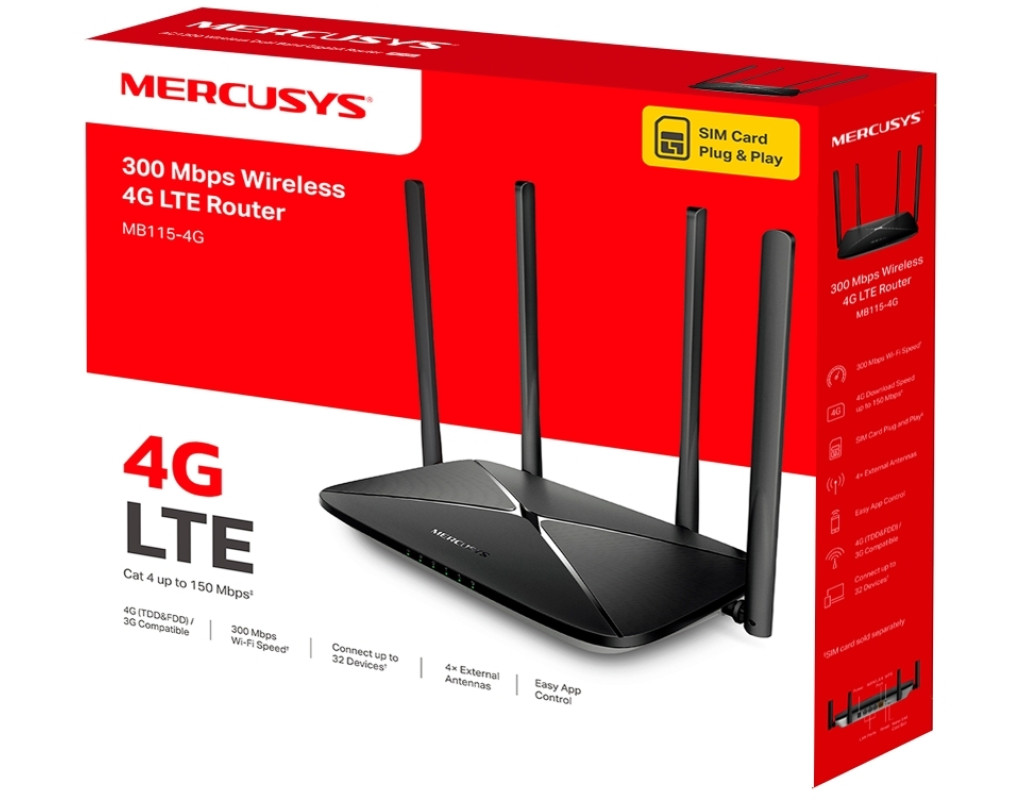 | Маршрутизатор Mercusys MB115-4G – це ваш незамінний партнер для створення стабільного та швидкого інтернет-з'єднання. Оснащений підтримкою стандарту Wi-Fi 802.11 b/g/n, цей пристрій забезпечує швидкість Wi-Fi до 300 Мбіт/с, що бездоганно підходить для безперебійного ігрового процесу та потокового передавання даних. Чотири незнімні антени гарантують максимальне покриття, навіть у місцях зі слабким сигналом. Підключіть свій Nano SIM і насолоджуйтеся швидкістю 4G LTE з швидкістю завантаження до 150 Мбіт/с. Цей маршрутизатор також підтримує до 32 одночасних підключень, дозволяючи всім вашим пристроям залишатися підключеними без втрати якості сигналу. Це ідеальний вибір для дому чи офісу, адже він забезпечує універсальність і зручність у використанні. Більше того, Mercusys MB115-4G оснащений універсальним портом LAN/WAN, який легко підключається до кабельних, оптоволоконних чи DSL-модемів, створюючи резервне WAN-підключення, щоб ви завжди залишалися на зв’язку. З ним ви можете змінити свою мережу відповідно до ваших потреб і бажань. |