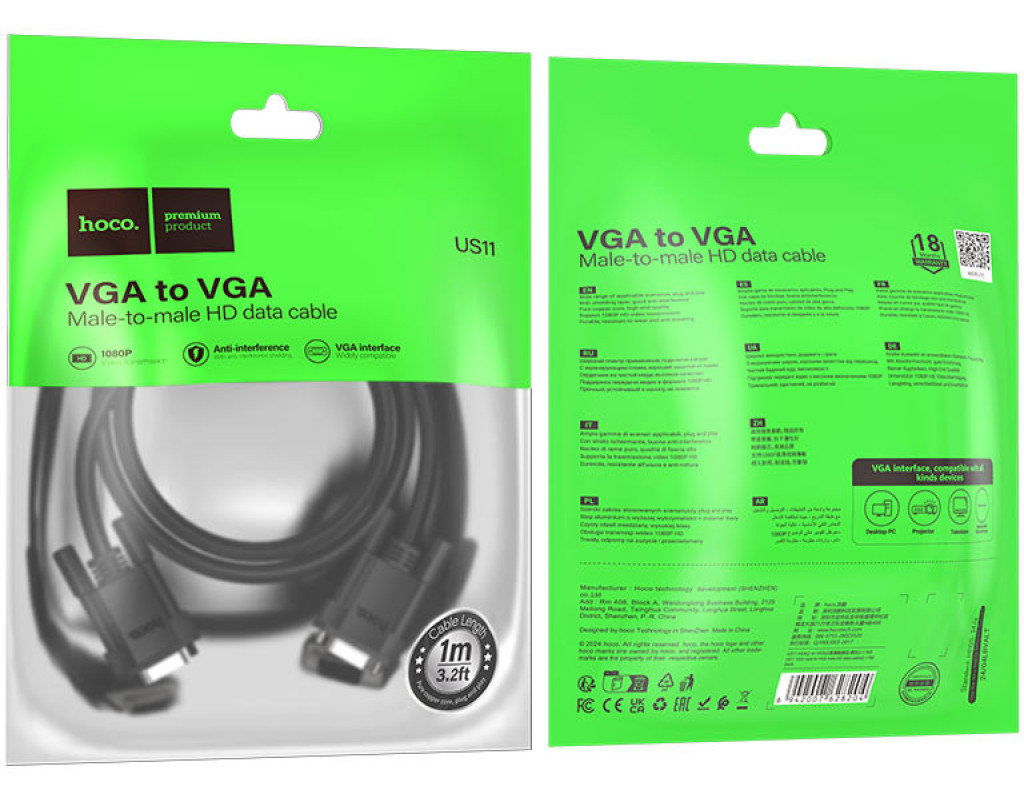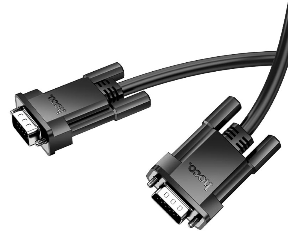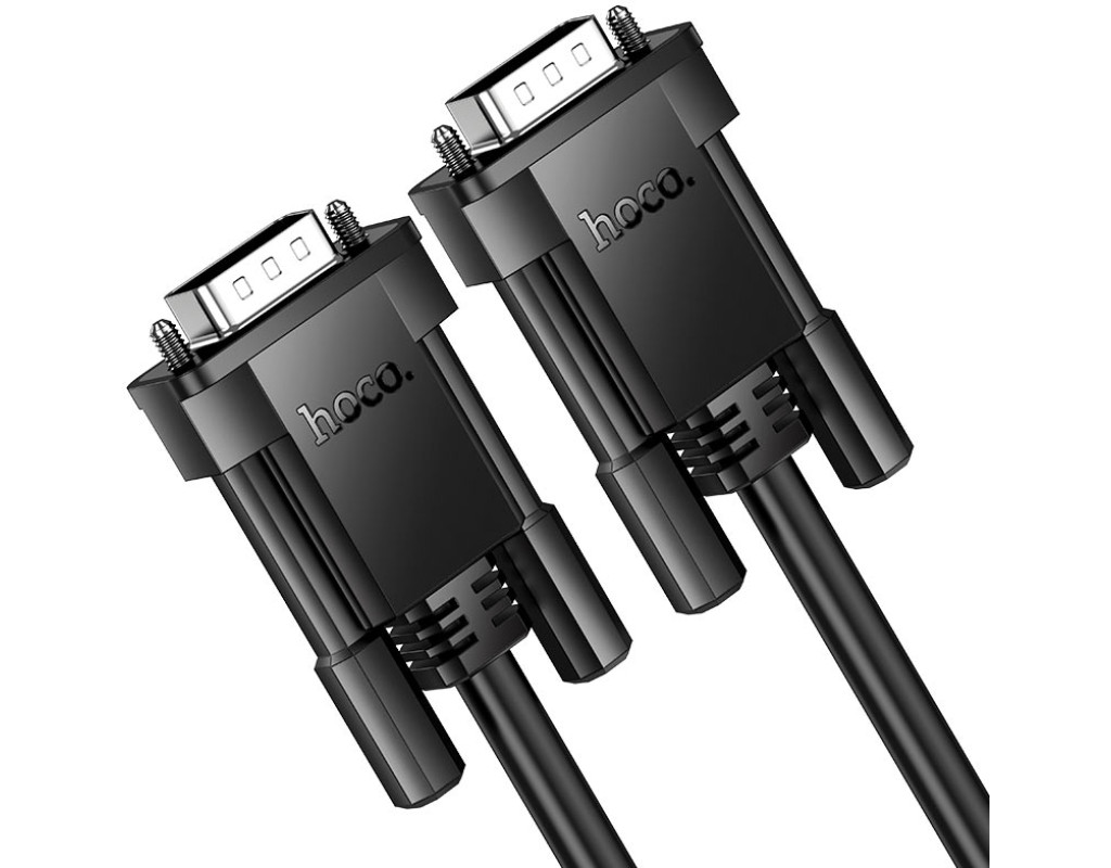 Кабель HOCO US11 VGA 1m, male to male (тато-тато), 1 ферит, чорний, Пакет