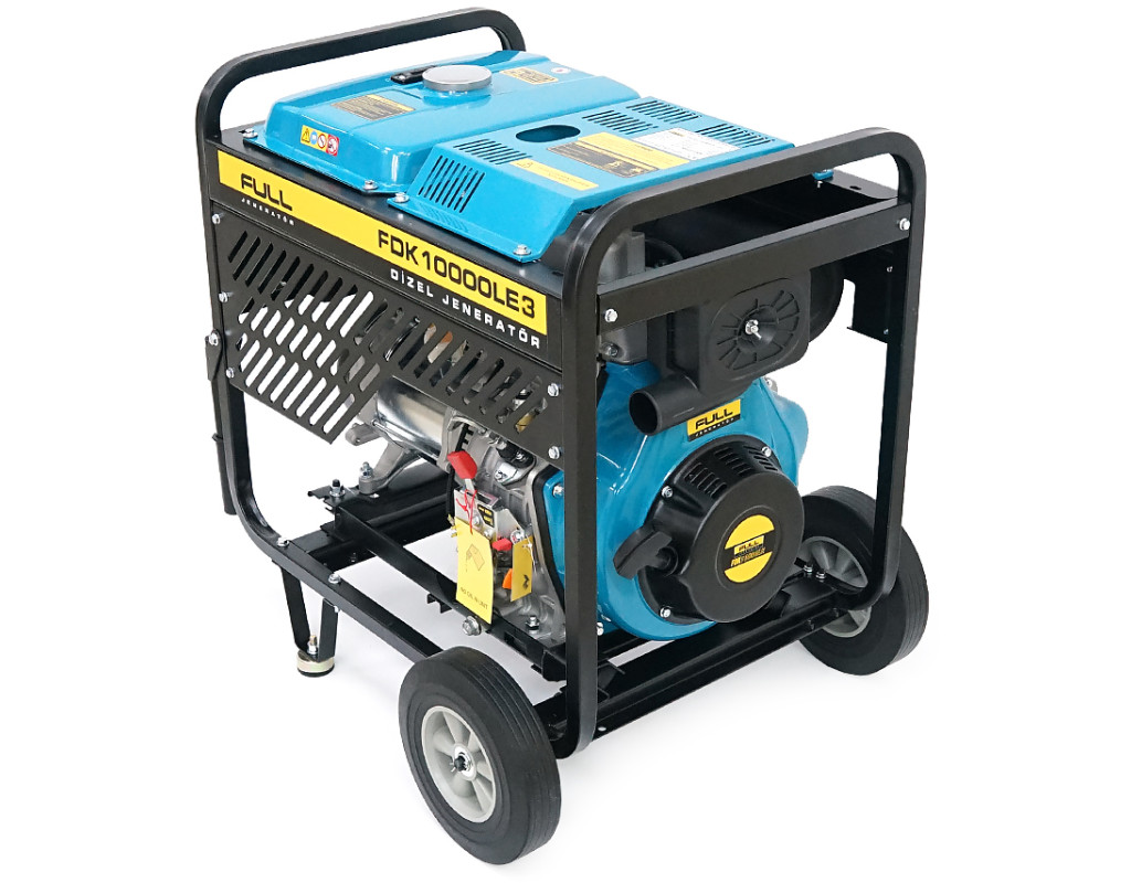Дизельний генератор FULL FDK10000LE3, трехфазный 230 / 380V, 50Hz, 9.4kVA / 7.5kW, бак 12,5 л, витрата 2 л / год, ручний / стартер (без АКБ), 700х510х620 мм, 124 кг
