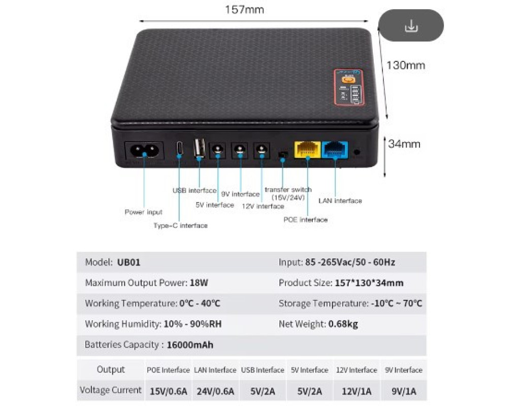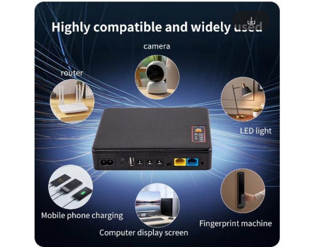 1. Вбудована літієва батарея, зарядка та використання, без очікування, джерела безперебійного живлення є резервним накопичувачем енергії 2. Легко носити, невеликий розмір, легко подорожувати, просто покласти сумку / машину 3. Вогнезахисна оболонка з високоякісних матеріалів, літієві батареї високої ємності більш міцні, довготривала безпека та довговічність 4. Він підтримує живлення двох пристроїв одночасно, підтримує джерело живлення подвійного пристрою, із захистом від надмірної зарядки, надмірної розрядки та короткого замикання інтелектуальної конструкції схеми. 5. Мультивихід, сумісний із широким спектром обладнання, широко використовується в машинах обліку робочого часу та відвідуваності відбитків пальців, системах пожежної безпеки, системах моніторингу безпеки, системах контролю доступу, відеокамерах, портативних DVD-дисках тощо. Параметри продукту: Стиль I: Ємність акумулятора: 16000 мАг Вхід: AC85-265V Частота: 50-60 Гц Вихід: USB 5V/2A Постійний струм 5 В/2 А Постійний струм 9 В/1 А DC 12V/1A POE 15В/0,5А POE 15 В/0,8 А Вихідна потужність (макс.): 18 Вт Робоча температура: -10 ℃ ~ 40 ℃ Вологість: 10%-90%PH Розмір продукту приблизно: 15,7 см * 13 см * 3,4 см Захист безпеки: перегрів, коротке замикання, перенапруга, перевантаження по струму, передозування, захист від перезаряду |