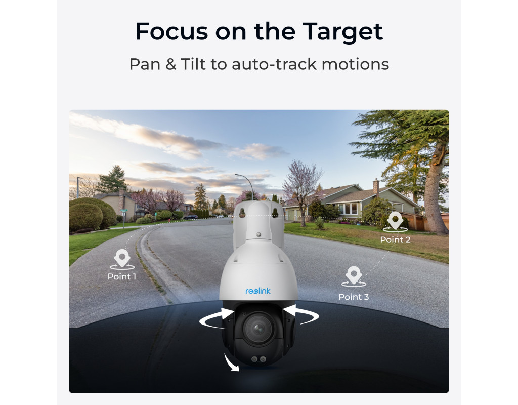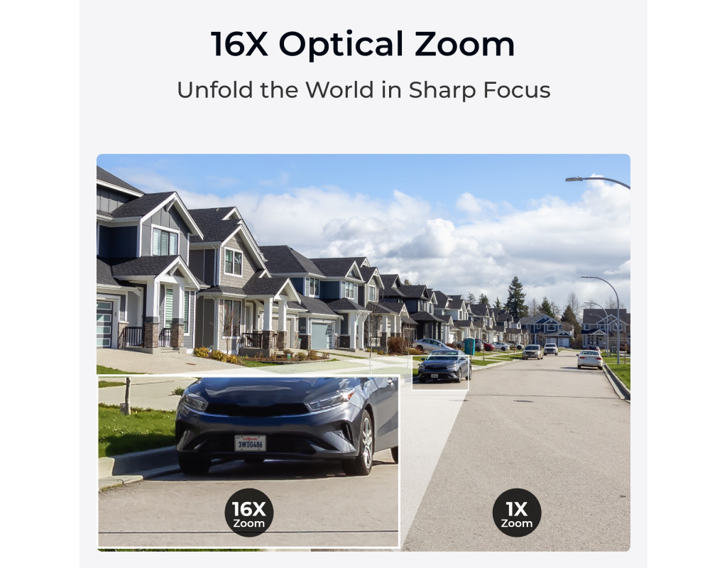 Завдяки об’єктиву з 16-кратним оптичним зумом, камера може робити більш чіткі великі плани з більшої відстані. Тепер масштабування стало ще простіше і швидше з 3D-зумом, що фокусується на певній області, яку ви вибрали на екрані. Ваш перегляд буде докладним та чітким навіть на відстані. Дивіться все навколо із охопленням 360° Відчуйте повне спостереження з можливостями панорамування на 360° та нахилу на 90°, доповненими регульованими швидкостями двигуна для точного керування. Легко слідкуйте за своїм переднім двором, ганком, під’їзною дорогою та стінами вашого будинку без сліпих зон. |