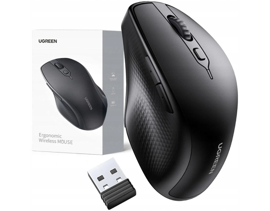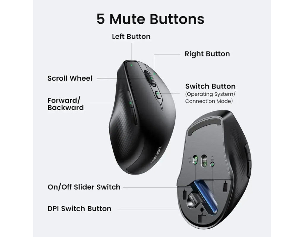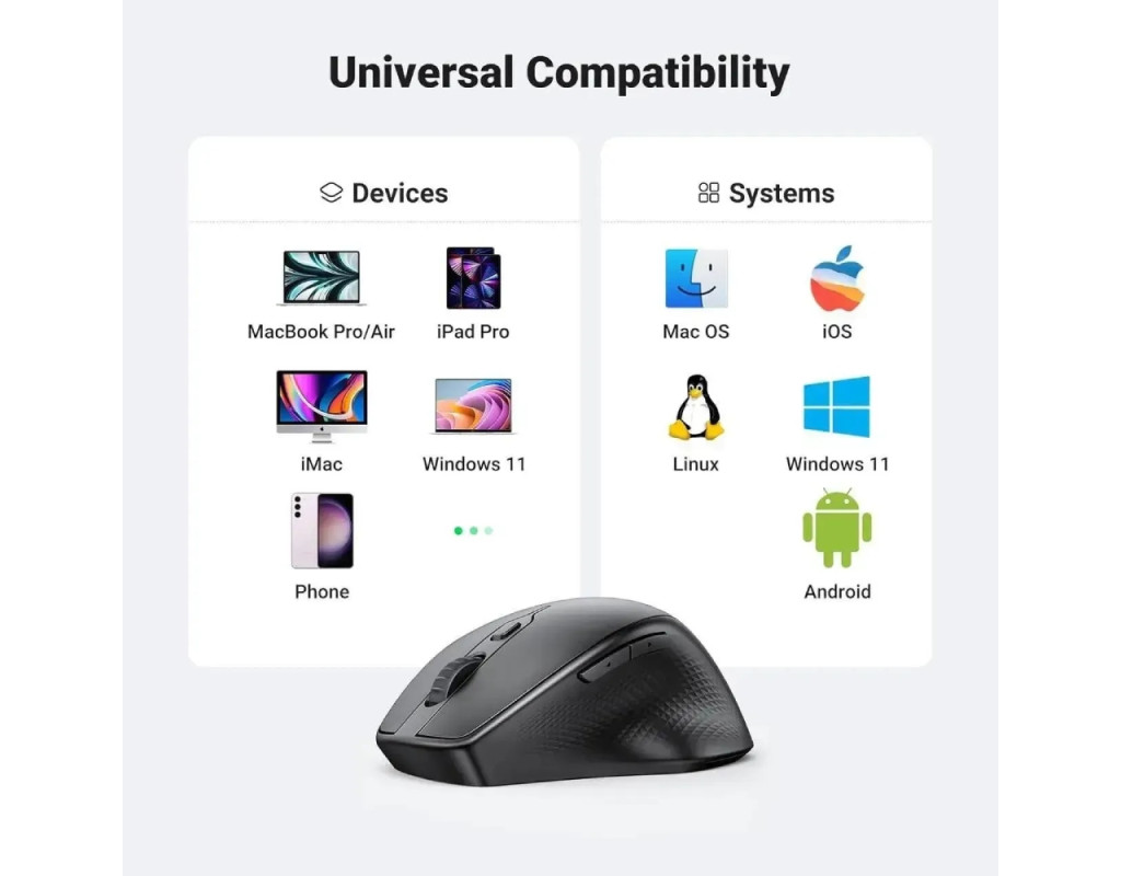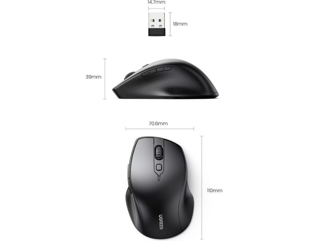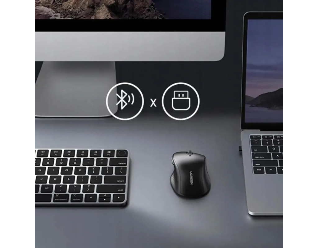 Мишка UGREEN 2.4GHz+Bluetooth MU101, бездротова, 4000dpi., 5кн., чорна