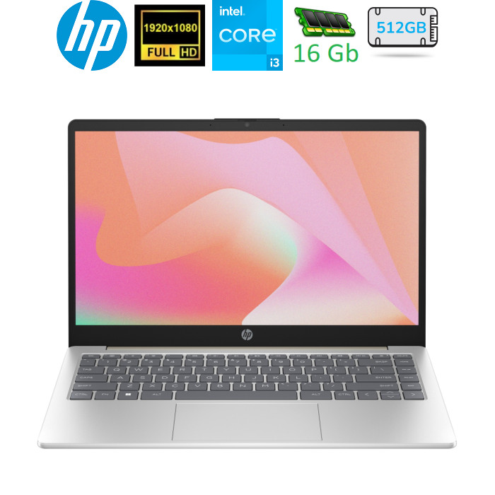 Ноутбук HP 14-ep0055ua (C9MY1EA); 14" FullHD (1920x1080) IPS LED матовий / Intel Core i3-1315U (1.2 - 4.5 ГГц) / RAM 16 ГБ / SSD 512 ГБ / Intel UHD Graphics / без ОП / Wi-Fi / BT / веб-камера / DOS / 1.41 кг / золотистий