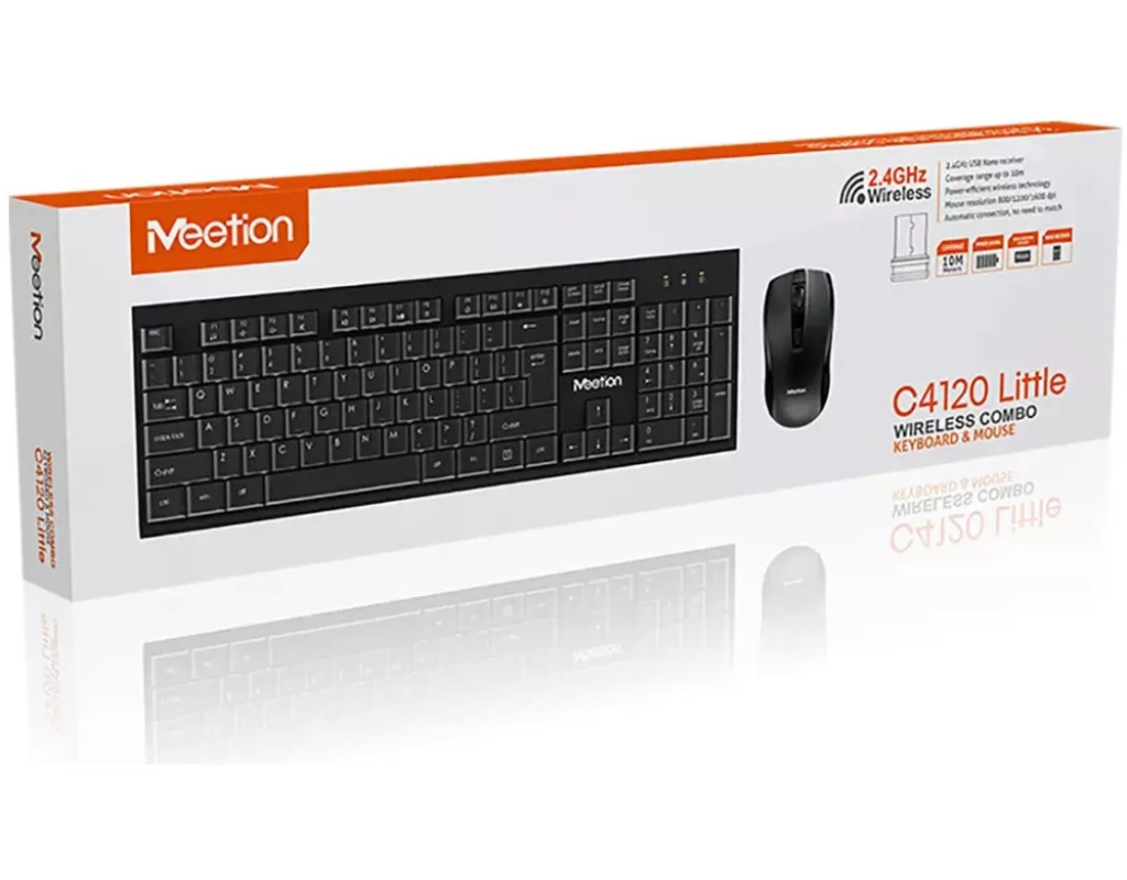 Meetion C4120 Little - стильний і зручний бездротовий комплект: тиха повнорозмірна клавіатура та миша з регульованою DPI. Бездротовий діапазон до 10 м, просте підключення по USB - комфорт і контроль без зайвих зусиль.