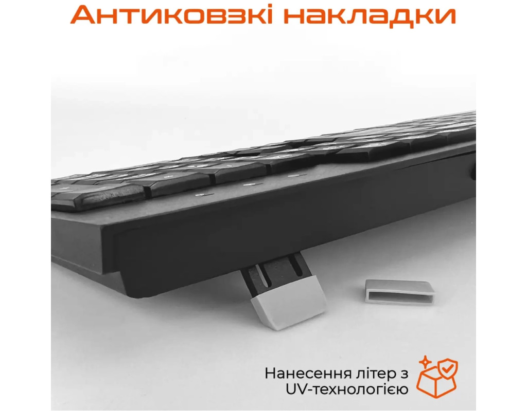 - Антиковзкі накладки: Надійно зафіксують клавіатуру на будь-якій поверхні