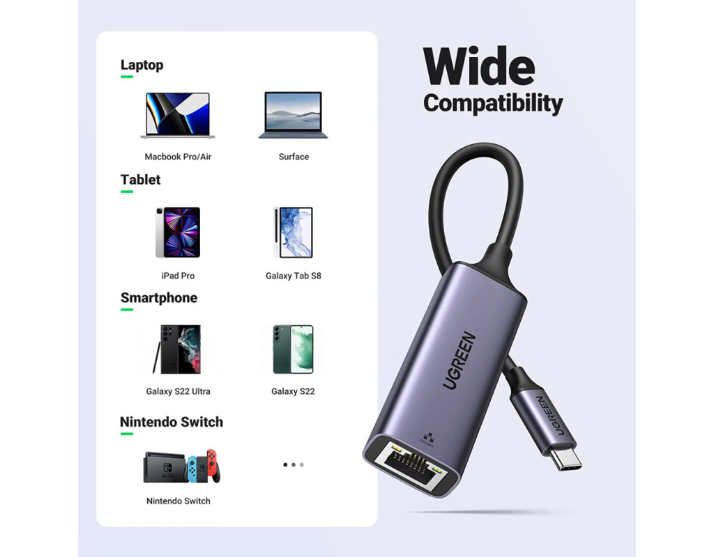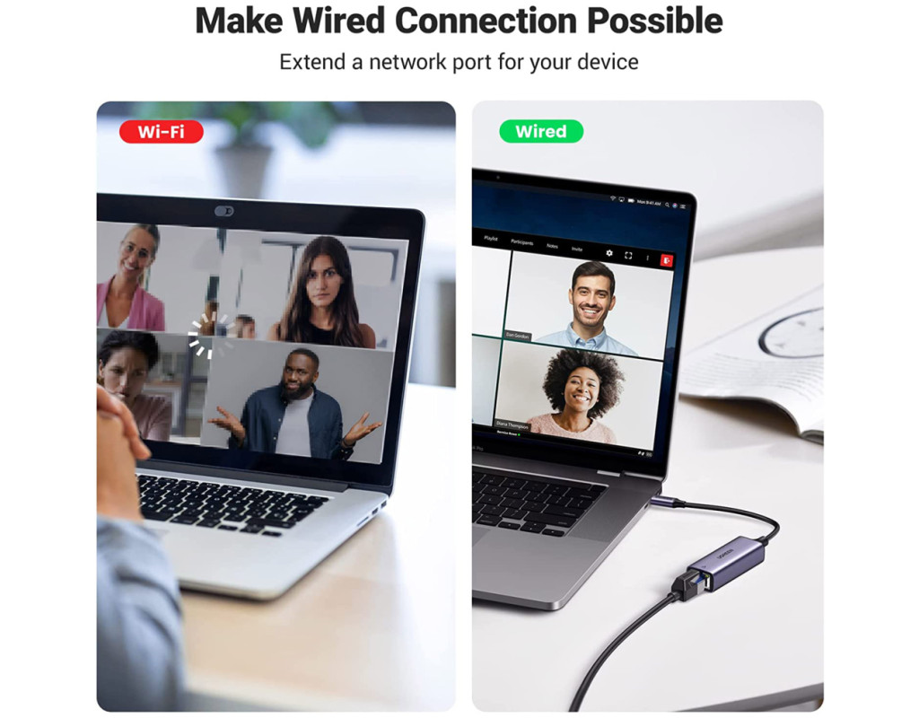 Вражаюча стабільність мережі: в порівнянні з WIFI, цей адаптер USB C - RJ45 Gigabit Ethernet може отримати набагато швидшу та надійнішу швидкість мережі, ефективно запобігаючи обриву бездротового з'єднання. Цей адаптер Ethernet-USB C відмінно підходить для запобігання бездротовим перешкодам і проблемам з конфіденційністю. |