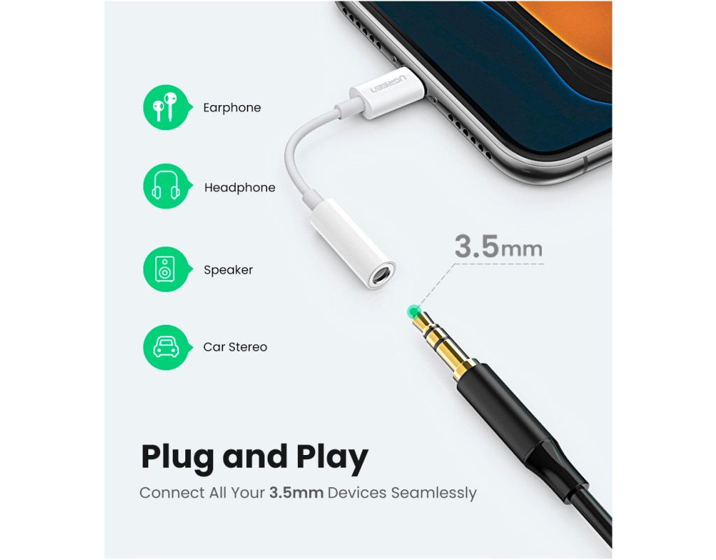 Перехідник Lightning to 3.5 mm 0.1m Headphone Jack Adapter Model US212 white Ugreen (30759)