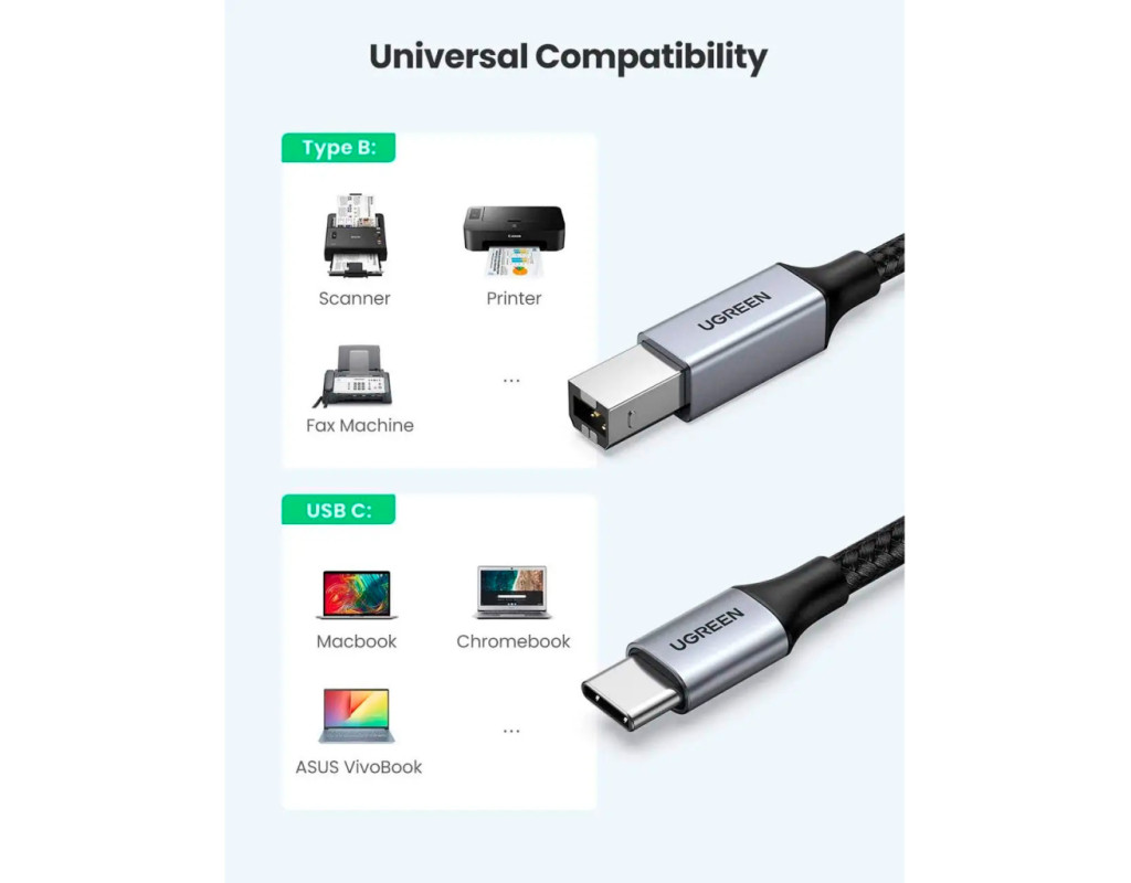 Кабель USB C для принтера та кабель MIDI: USB-кабель B — USB C для принтера підтримує підключені принтери, сканери, факсимільні апарати, а також велику частину аудіообладнання. Підключайте клавіатури, гітарні підсилювачі, ЦАП-перетворювачі та діджейські пульти керування. Широка сумісність: цей кабель USB B-C для принтера підтримує ноутбуки, планшети та мобільні телефони Type-C/Thunderbolt 3. Підключіть MacBook Pro/Air/Mini, iPad Pro та Samsung Galaxy до принтера або аудіопристрою для спільної роботи. Просте підключення драйвери не потрібні. Високошвидкісна передача даних: кабель USB C - B підтримує високошвидкісну передачу даних/синхронізацію до 480 Мбіт/с. Зворотна сумісність із повношвидкісними USB1.1 (12 Мбіт/с) та 1.0 (1,5 Мбіт/с) забезпечує більш стабільну передачу даних, ніж з'єднання WIFI. Стабільний та чіткий друк: цей кабель USB C для принтера, оснащений антиокислювальними, нікельованими штекерами та потрійним екрануванням від електромагнітних перешкод, створюваних іншим електричним обладнанням, забезпечує кращу продуктивність передачі та захист від електромагнітних/радіочастотних перешкод. Насолоджуйтесь чітким та зручним друком без втрати даних під час друку. Неперевершена довговічність: кабель USB C для принтера має оболонку з нейлонового волокна для підвищення стійкості до корозії, формовану систему розвантаження натягу та високоякісний алюмінієвий корпус. Цей кабель можна вільно згинати та скручувати більше 3000 разів, що забезпечує більшу міцність та тривалий термін служби. |
