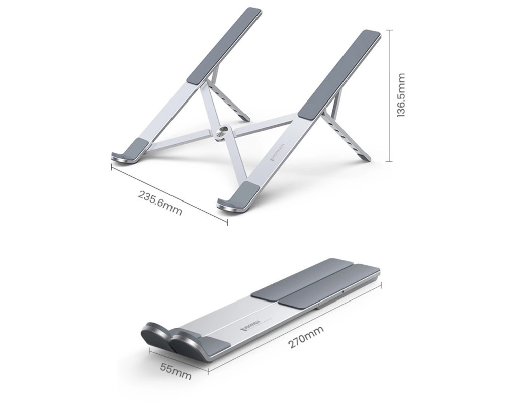 UGREEN LP451 Foldable Laptop Stand — компактна та стильна підставка, що забезпечує комфортну роботу з ноутбуком чи планшетом. Завдяки регульованому куту нахилу (0–45°) та 5 рівням висоти, ви можете налаштувати оптимальне положення для роботи, навчання чи розваг. Підставка виготовлена з міцного алюмінієвого сплаву, оснащена силіконовими вставками для захисту від ковзання та подряпин, а відкритий дизайн покращує вентиляцію та охолодження пристрою. Завдяки складному та надлегкому дизайну (235 г), підставка ідеально підходить для щоденного використання та подорожей. |