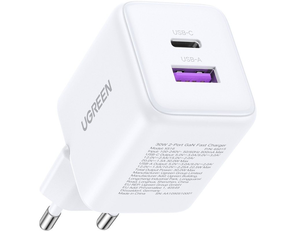 | Ugreen X516 - універсально сумісний мережевий зарядний пристрій з інноваційною технологією GaN, яка забезпечує високу потужність в компактному корпусі.