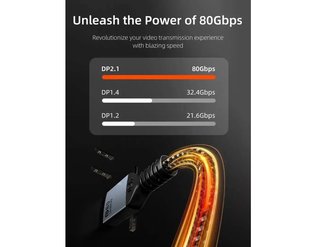 | Відкрийте для себе майбутнє технологій відображення з нашим кабелем Ultra 16K DisplayPort 2.1. Кабель CABLETIME DP 2.1 забезпечує реалістичну роздільну здатність 16K@60Hz, 10K@60Hz, 8K@120Hz і 4K@144Hz, а також пропускну здатність 80 Гбіт/с. Це робить його ідеальним для відображення реалістичних зображень для всіх ваших ігрових і робочих потреб. |