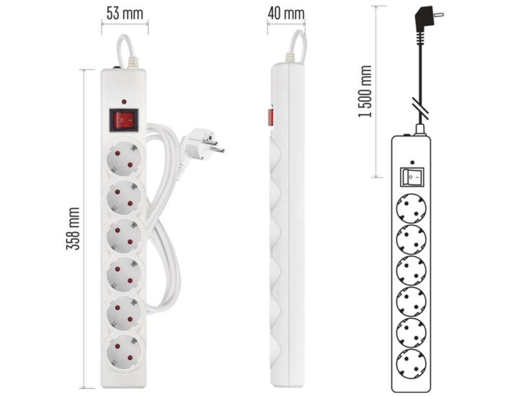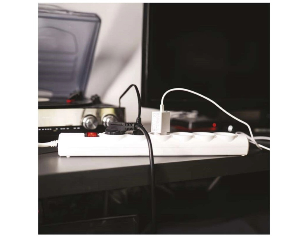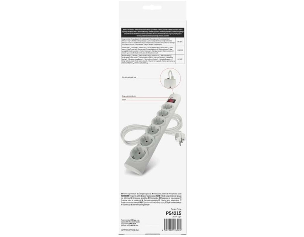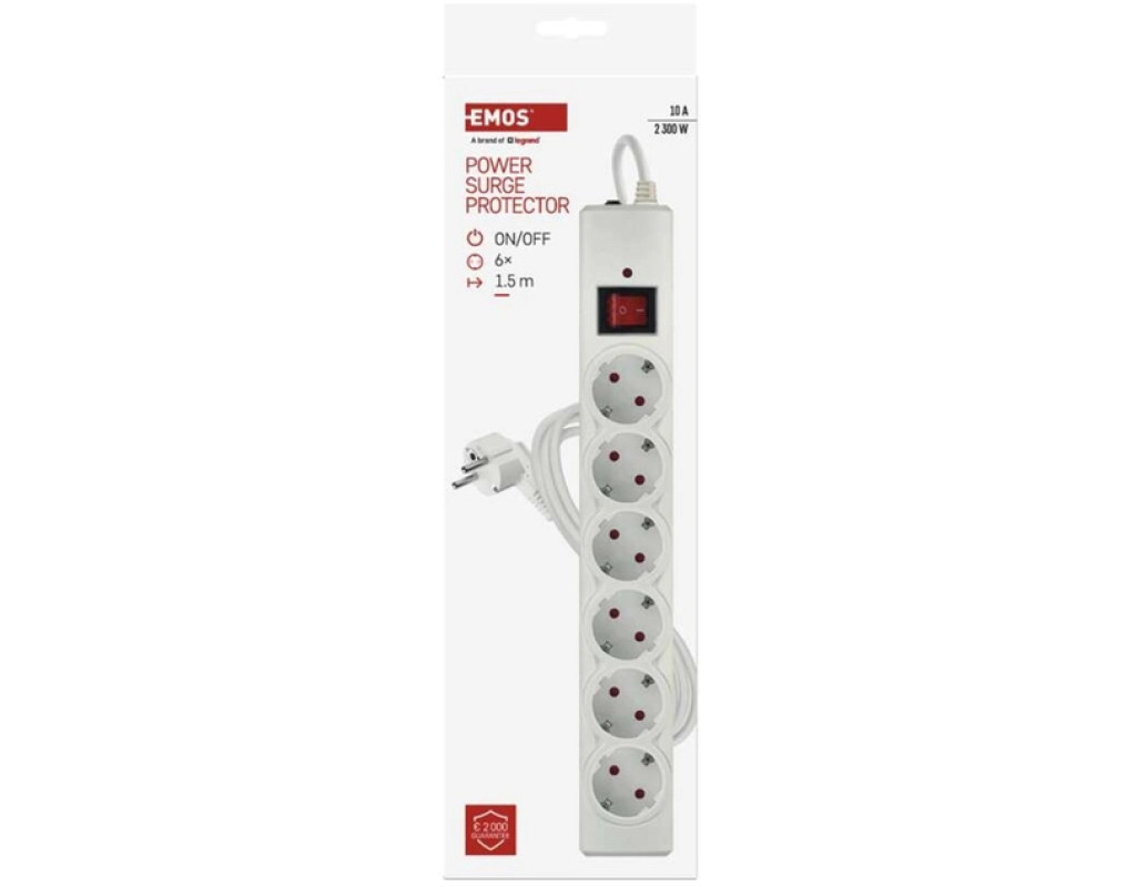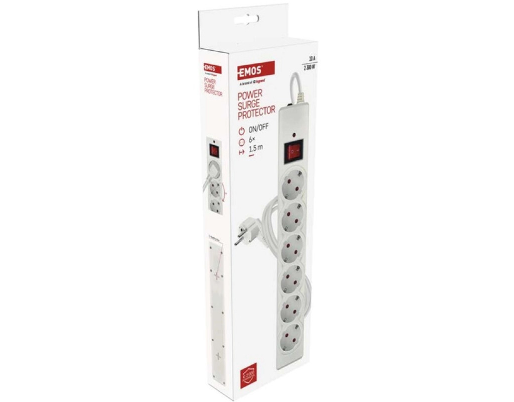 Компактний мережевий фільтр EMOS P54215 на 6 розеток забезпечує надійний захист підключених приладів від стрибків напруги. Завдяки вбудованому варистору з енерговбирною здатністю 380 Дж він ефективно оберігає побутову техніку, комп'ютери, телевізори та іншу електроніку від імпульсних перенапруг у мережі. Переваги: