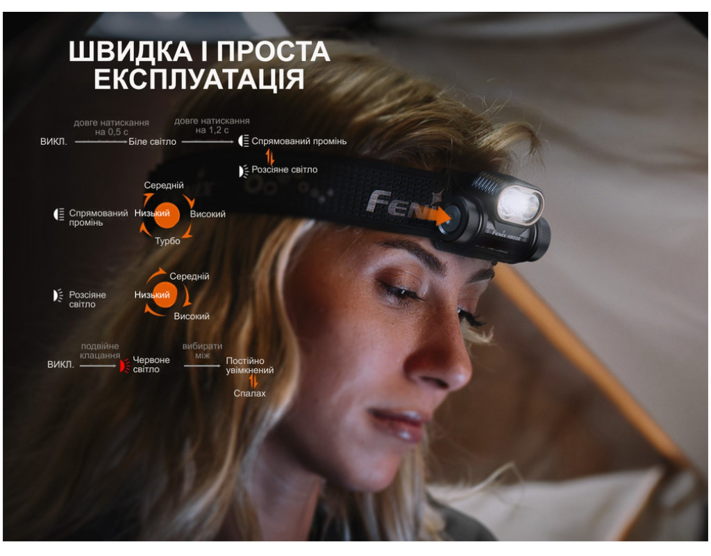 | Ліхтар Fenix HM55R — це ваш надійний компаньйон для активного відпочинку на природі, роботи на будівельних майданчиках, вечірніх пробіжок та інших активностей без обмежень. Виблискуючи привабливим фіолетовим кольором, він не тільки відповідає за стиль, але й забезпечує чудову функціональність. Матеріал корпусу з полікарбонату гарантує міцність і легку вагу — усього 105 г разом з акумулятором та налобним кріпленням. Цей налобний ліхтар оснащений різноманітними унікальними функціями і має клас захисту IP68, що робить його ідеальним вибором для екстремальних умов: витримує занурення у воду та падіння з висоти до 2 м. Серед джерел світла — два потужні світлодіоди: Luminus SST20V-Ra90 для широкого освітлення та Luminus SST25 зі сфокусованим далекобійним променем, а також червоний діод 2835 для м'якого підсвічування, захищаючи нічний зір. Максимальна яскравість ліхтаря досягає 1200 люменів, забезпечуючи видимість на відстані до 174 метрів. Працює до 141 год 10 хвилин у режимі найнижчої яскравості. Завдяки 9 режимам роботи, серед яких турбо, мінімальний, середній, максимальний, червоне світло та стробоскоп, ви зможете обрати оптимальний для будь-якої ситуації. Інтелектуальний датчик наближення автоматично знижує яскравість світла, коли об’єкт знаходиться близько, що зберігає ресурс батареї та запобігає можливому перегріванню. Джерело енергії — акумулятор формфактора 18350, сумісний з 16340 та CR123A, що заряджається через порт USB Type-C за 2.5 години. Заряд залишається під контролем завдяки кольоровій індикації, інформуючи про поточний стан. Ліхтар оснащений функцією пам'яті, що зберігає останній використаний режим яскравості, дозволяючи швидко повернутися до попередніх налаштувань. Управління однією бічною кнопкою забезпечує простоту в експлуатації, а налобна резинка з перфорованим дизайном дозволяє комфортно носити ліхтар, запобігаючи натирання. Комплектація містить всі необхідні елементи: ліхтар з резинкою на голову, акумулятор ARB-L18-1600, кабель USB-C для заряджання, запасне ущільнювальне кільце, інструкцію користувача та гарантійний талон. З Fenix HM55R ви отримаєте високий рівень безпеки та впевненості у будь-яких умовах. Це рішення для тих, хто цінує якість, надійність та ефективність в одному флаконі. |