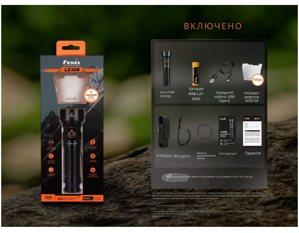 | Ліхтар Fenix LD36RFC вогняний камуфляж (LD36RFC) є справжньою знахідкою для тих, хто цінує високу якість та багатофункціональність. Цей багатоцільовий ліхтар розроблений спеціально для тих, хто шукає надійний і потужний інструмент для освітлення у будь-яких умовах. Завдяки поєднанню ручного джерела освітлення та кольорового прожектора, він підходить як для щоденного використання, так і для фото- та відеозйомок. Під лінзою із загартованого скла розташовані 6 випромінювачів, включаючи три потужні світлодіоди Luminus SFT25R Gen2 (6500К) та три RGB-діоди, що забезпечують 6 кольорових відтінків світла. Це дозволяє налаштовувати освітлення відповідно до настрою та вимог контенту. Вражаючий термін служби кожного діода складає до 50 000 годин, що свідчить про довговічність та надійність. Ліхтар має унікальний дифузійний фільтр AOD-04, який перетворює спрямований промінь на розсіяне світло, освітлюючи простір на 360°, що створює максимально комфортні умови для будь-якої діяльності. Завдяки 14 варіантам освітлення, ви можете вибрати найкращий режим під конкретні потреби завдяки розділенню режимів на білі та кольорові групи. У режимі турбо Fenix LD36RFC здатний видавати до 3600 люмен з дальністю світла до 385 метрів. Інші режими пропонують різну яскравість та тривалість роботи, що забезпечує оптимальне використання в різних ситуаціях. Особлива увага приділена безпеці, включаючи інтелектуальний захист від перегрівання та захист від зворотної полярності, що робить ліхтар надзвичайно надійним інструментом. Ліхтар живиться від акумулятора ARB-L21-6000, який забезпечує до 65 годин автономної роботи. Швидке заряджання від вологозахищеного порту USB-C займає лише 3,5 години. Кольоровий індикатор під зарядним портом повідомляє про поточний рівень заряду батареї, що дозволяє контролювати процес зарядки. Корпус ліхтаря виконано зі сплаву алюмінію A6061-T6, відзначеного високою стійкістю до корозії та механічних пошкоджень. Завдяки стандарту захисту IP68, він витримує падіння з висоти до 1 метра і може працювати навіть під водою, що робить його ідеальним вибором для екстремальних умов. Компактний розмір (139,6 мм завдовжки) і вага (231 г) роблять Fenix LD36RFC зручним для транспортування. У комплекті йдуть зручна знімна кліпса, чохол, темляк, а також різьблення 1/4'' для кріплення на штативі, що дозволяє використовувати ліхтар у різних ситуаціях, включаючи закріплення на сумку або рюкзак. Саме поєднання інноваційних технологій, високоякісних матеріалів та відмінних експлуатаційних характеристик робить ліхтар Fenix LD36RFC у стані "вогняний камуфляж" надійним компаньйоном для будь-яких завдань. |