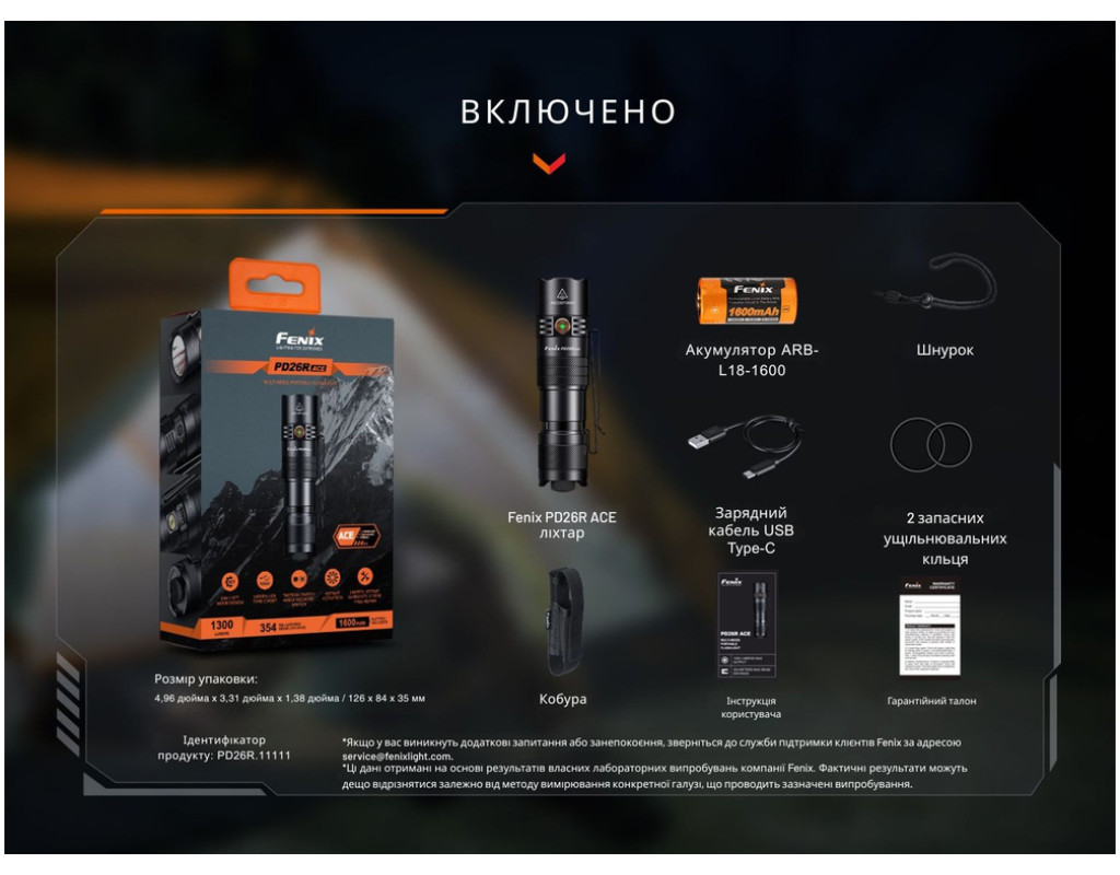 | Ліхтар Fenix PD26R ACE (PD26RACE) являє собою інноваційне рішення для любителів активного відпочинку, професіоналів у сфері безпеки та тих, хто потребує потужного світла у будь-яких умовах. Завдяки вісьмирежимній системі освітлення, цей ліхтар готовий забезпечити надійну підтримку у різних ситуаціях. Основою світлової системи Fenix PD26R ACE є високоякісний світлодіод Luminus SFT25R, що гарантує яскравість до 1300 люмен і дальність променя до 354 метрів. Додатково, завдяки спеціальному покриттю на ультрапрозорій загартованій лінзі, світлопропускання максимально ефективне. Пристрій забезпечує стабільну роботу навіть під час різких змін умов навколишнього середовища. Режими освітлення варіюються від потужного турбо-режиму, ідеального для швидкої орієнтації в темряві, до більш економічного "місячного сяйва", яке дозволяє зберігати заряд під час тривалого використання. Спеціальні режими стробоскопу і SOS роблять ліхтар незамінним інструментом у критичних ситуаціях, коли увага оточуючих або допомога необхідні негайно. Однією з ключових особливостей є захист від перегрівання, що значно продовжує термін служби ліхтаря. Також вбудована функція стабілізації світлового потоку сприяє рівномірному освітленню без мерехтінь і перепадів яскравості. Живлення забезпечується акумулятором 18350, ємністю 1600 мА·год, який легко заряджається за допомогою USB Type-C кабелю, що входить до комплекту. Корпус виготовлений з алюмінієвого сплаву A6061-T6, покритий твердим анодуванням HAIII, що забезпечує не лише міцність, але й естетичний вигляд. Водонепроникність класу IP68 гарантує захист від пилу та можливість занурення на глибину до 2 метрів без втрати функціональності. Не менш важливо, що модель витримує падіння з висоти до 1 метра, звільняючи користувача від надмірних переживань під час активного використання. Функціональна комплектація, зокрема, знімна кліпса та ремінець на руку, забезпечують комфорт і зручність при носінні ліхтаря. Додаткові аксесуари, такі як чохол і запасні ущільнювальні кільця, продовжують життєвий цикл пристрою, захищаючи його від впливу зовнішніх факторів. На додачу, індикатор низького заряду завчасно нагадує про необхідність підзарядки, що дозволяє планувати використання без неприємних сюрпризів. Виникнення ризику неправильної полярності компенсується наявністю захисту від переполюсування, що значно знижує можливі технічні проблеми. З Fenix PD26R ACE ви отримуєте не лише простий ліхтар, а багатофункціональний інструмент, готовий служити вам в найрізноманітніших умовах завдяки своїй неперевершеній якості, міцності та ергономічності. |