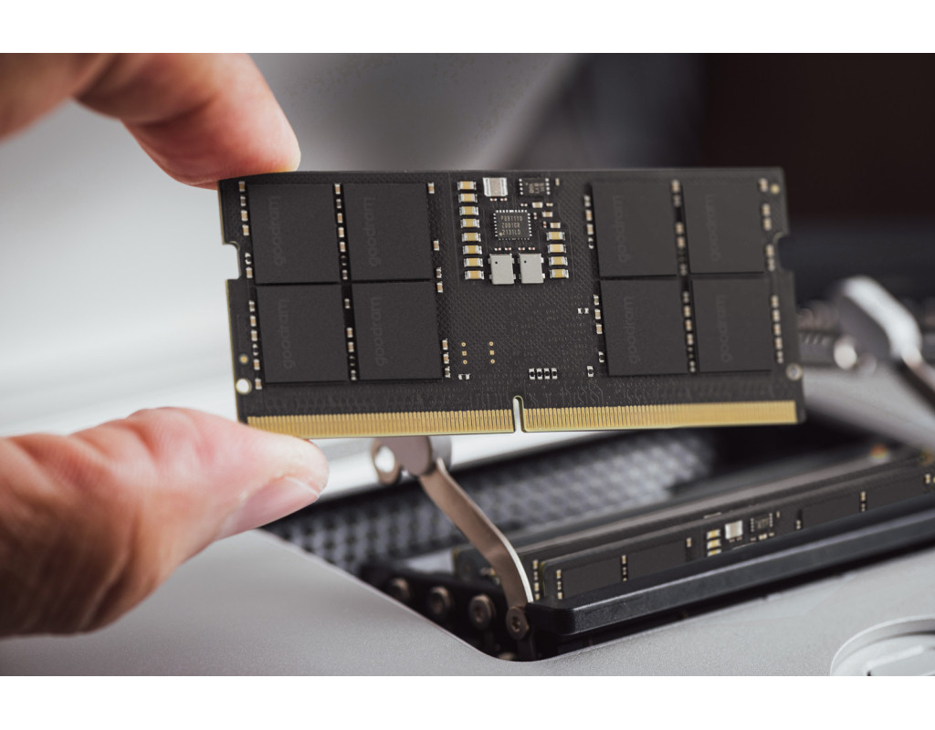 | Пам’ять Goodram DDR5 SODIMM є величезним стрибком у технології в порівнянні з попередніми поколіннями, а також безпрецедентну продуктивність. Різницю, безумовно, оцінять користувачі платформ, адаптованих до останнього стандарту — DDR5 SODIMM є приблизно 50-відсотковим збільшенням пропускної спроможності порівняно з четвертим поколінням та подвоєнням кількості банків. Стабільність на цій високій тактовій частоті гарантується PMIC, інтегрованим чіпом керування живленням. |