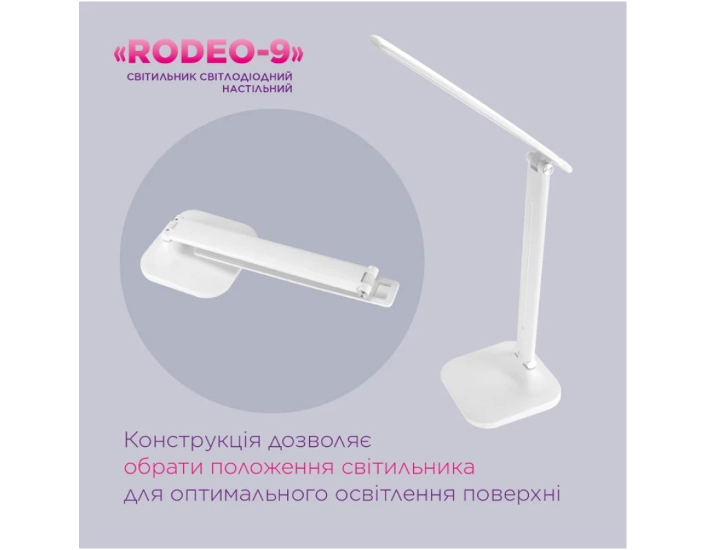 | Настільна світлодіодна лампа ELM Rodeo - універсальний світильник для побутових і робочих цілей. Світильник виконаний у мінімалістичному дизайні з полірованою поверхнею і відмінно впишеться в більшість інтер’єрів.