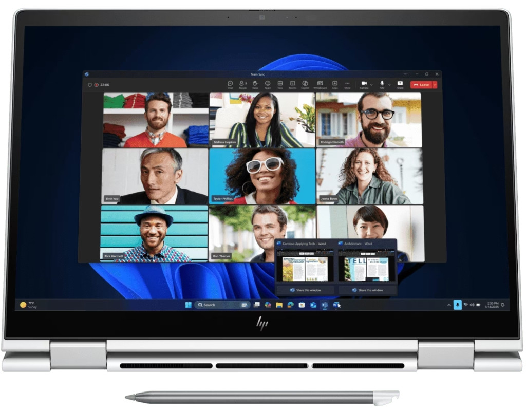 Підсумовуйте та отримуйте рекомендації щодо релевантного контенту за допомогою Microsoft Copilot. Вивільніть час, щоб зосередитися на найважливішому завдяки найновішому процесору Intel® Core™ Ultra з 11 TOPS NPU. Встигайте більше між заряджаннями завдяки акумулятору, оптимізованому за допомогою ШІ. Працюйте де завгодно, не знижуючи продуктивність, завдяки Windows 11 і технології співпраці, безпеки й підключення HP. Підсумовуйте та переписуйте вміст, отримуйте рекомендації щодо релевантного контенту та залишайтеся продуктивними за допомогою Microsoft Copilot. Потужний процесор Intel®З процесором Intel® Core™ останнього покоління вимогливі бізнес-програми працюватимуть іще швидше. Безпека — ваш головний пріоритетHP Wolf Pro Security Edition забезпечує попередньо налаштований захист ПК корпоративного рівня для малого й середнього бізнесу. Пристрій для тих, хто не сидить на місціВиражайте свої ідеї за будь-якого освітлення за допомогою надзвичайно яскравого сенсорного дисплея з антибліковим покриттям і датчиками зовнішнього освітлення, завдяки яким ним можна користуватися на вулиці. |