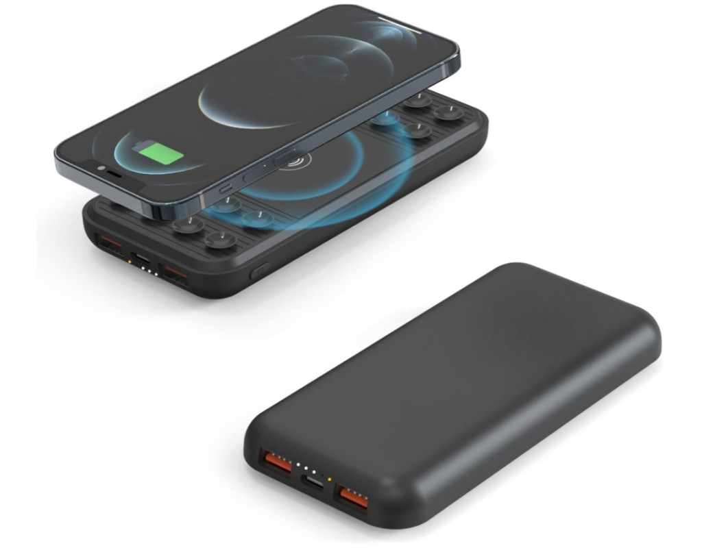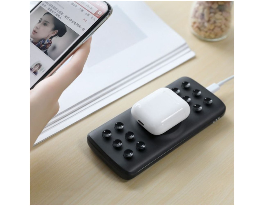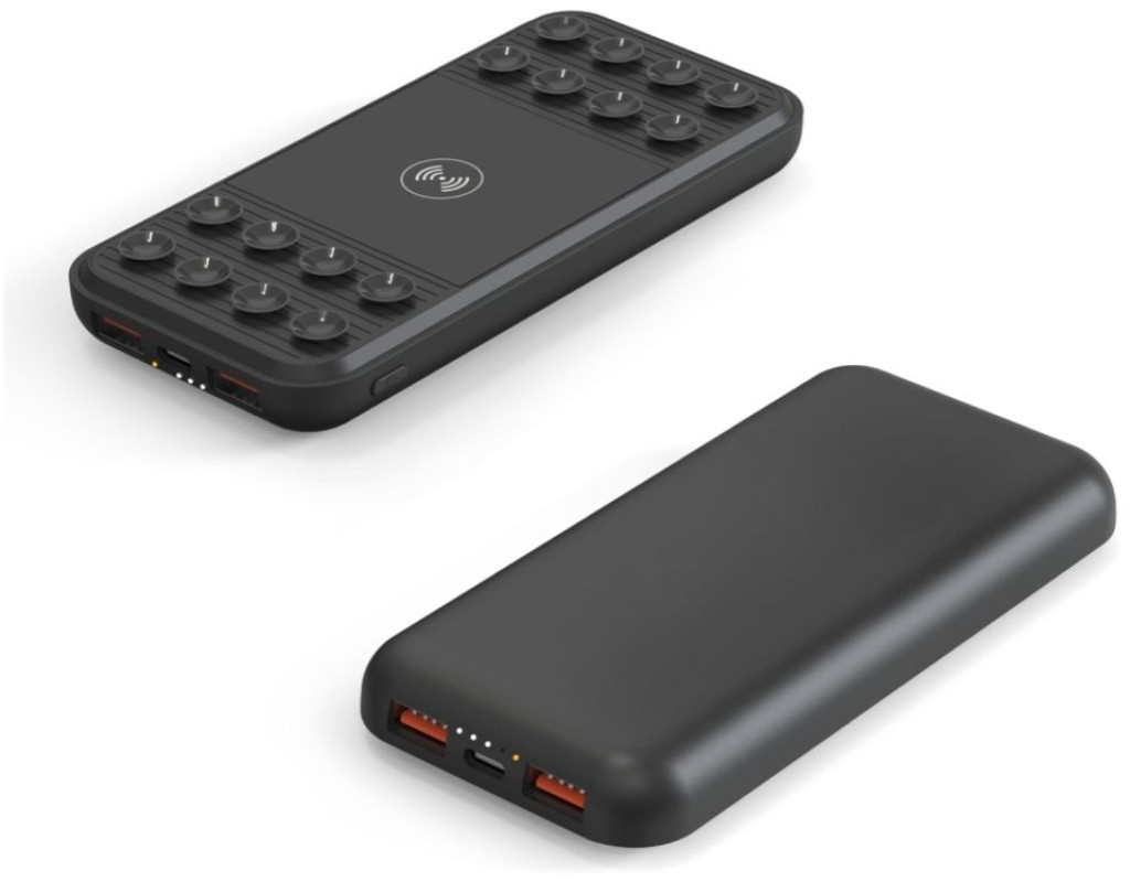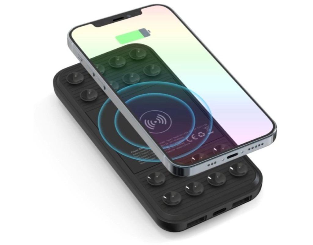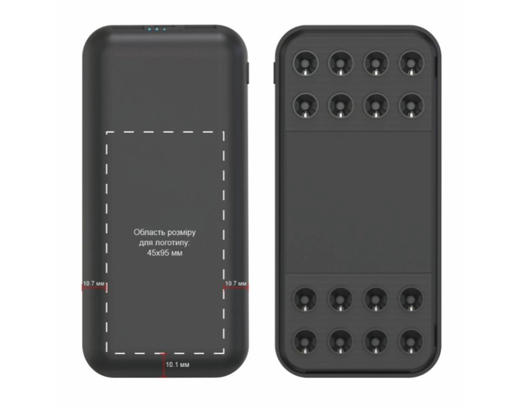| Повербанк ChargeMate 10000 mAh – це портативний бездротовий зарядний пристрій, виготовлений з ABS пластику. Потужність бездротової зарядної системи – 15 Вт. Модель призначена для зарядки смартфонів, планшетів, ліхтариків тощо. Повербанк має роз'єм Тype-С та 2 USB. Модель обладнана 16 міні-присосками на корпусі, на які зручно класти телефон для зарядки. Повербанк підтримує функцію швидкого заряджання PD/QC з потужністю 22,5 Вт. |