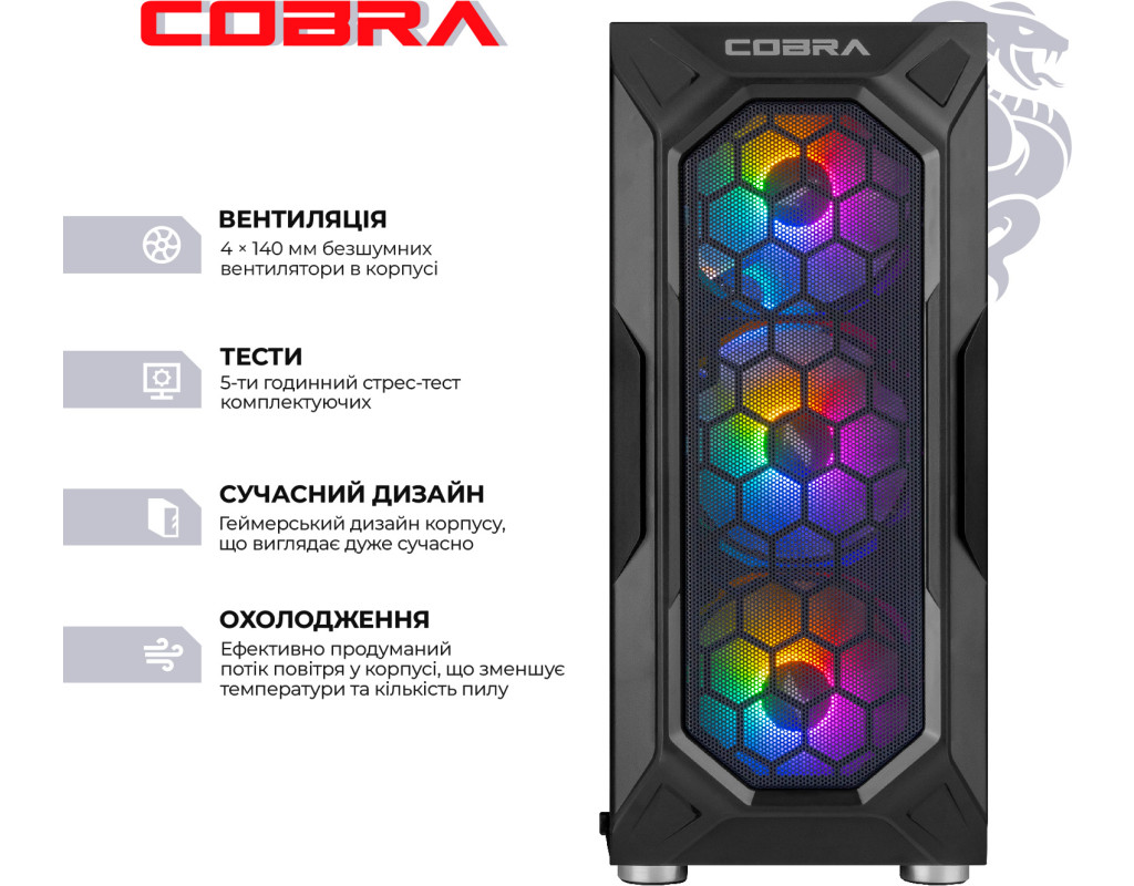 | COBRA поєднує в собі високу продуктивність, потужність і сучасні технології. Ультра графіка Топові відеокарти забезпечать максимальну, і безкомпромісну продуктивність в самих вимогливих іграх і додатках. Ігри в ультра настройках графіки - тепер ти зможеш побачити світ сучасних ігор очима розробників, оцінити їх так, як вони були задумані, а не миритися і підлаштовуватися. Топові процесори Старша лінійка процесорів - верх продуктивності і приємний запас для комфортної роботи з великими масивами даних, складними іграми, обробкою великих обсягів мульти-медіа контенту. Безпрецедентна потужність, і малий час відгуку разом з вбудованими засобами безпеки дозволяють працювати, грати і створювати контент так швидко і так ефективно, як ви захочете. Абсолютна міць твого ПК від COBRA Ігрові комп`ютери COBRA з максимальною конфігурацією зібрані спеціально для самих просунутих користувачів і вимогливих до якості графіки геймерів. Дана лінійка дозволить насолодитися ультра налаштуваннями графіки і максимальною роздільною здатністю в усіх сучасних іграх, зберігаючи максимально доступні показники FPS. Кращого просто не існує! ПК COBRA збираються на базі комплектуючих визнаних світових лідерів, таких як Intel, AMD, ASUS, MSI, Gigabyte, і ін. Професійна збірка комп`ютера COBRA забезпечить оптимальний повітряний потік всередині корпусу, а значить і відмінне охолодження всіх компонентів ПК. |