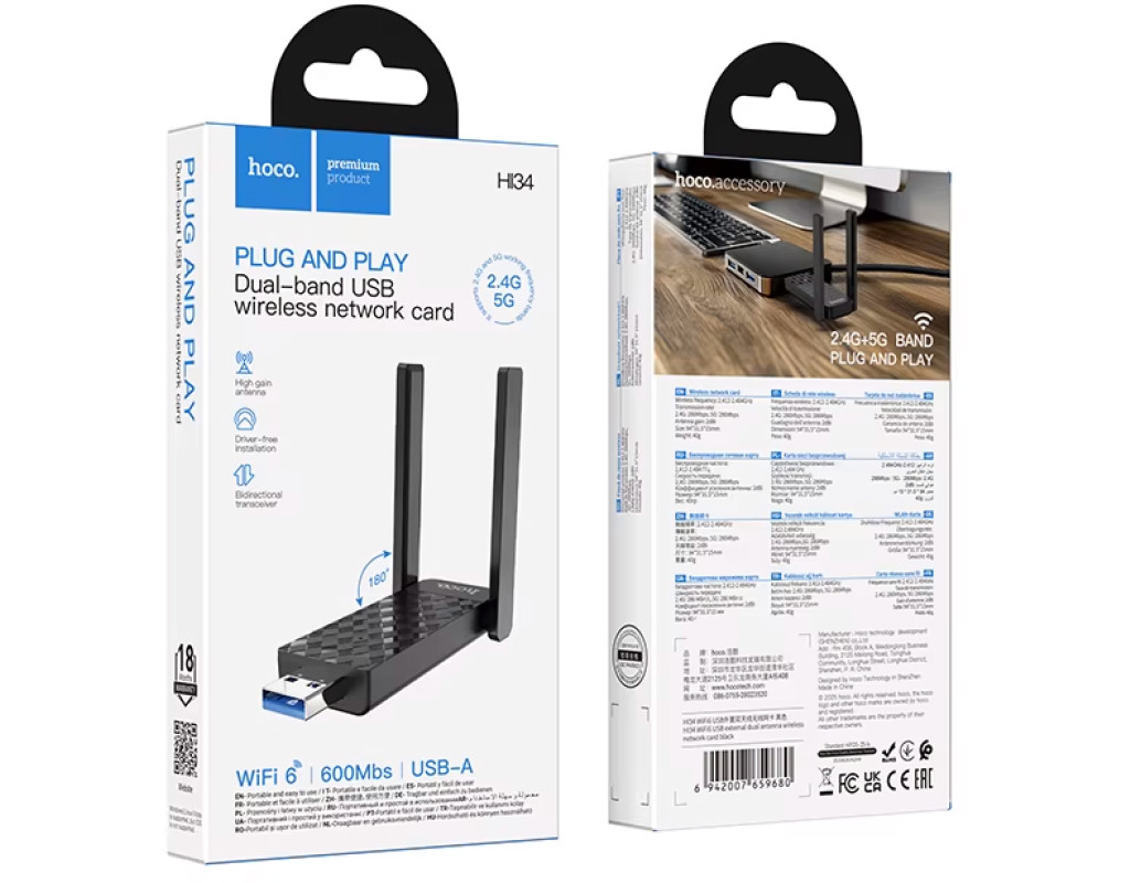 4G модем HOCO HI34, 600Mbps, 2.4G / 5G, WIFI6, Black, BOX
