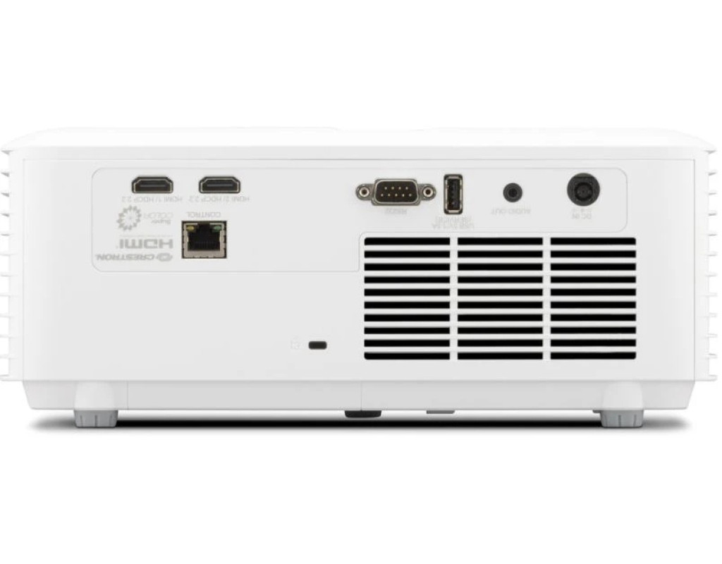 | ViewSonic LSD400HD-ST — яскравість, компактність і довговічність у кожній деталі LSD400HD-ST належить до серії Luminous Superior, створеної для комерційних, освітніх і спеціалізованих застосувань. Завдяки третій генерації лазерно-фосфорної технології проєктор забезпечує яскравість 4000 ANSI люменів і ресурс роботи до 30 000 годин. Безлампова конструкція робить його екологічним і економічним рішенням — енергоспоживання зменшено до 49% порівняно з традиційними ламповими моделями. З короткофокусним об’єктивом 0.5:1 пристрій створює 100-дюймове зображення з відстані лише 1,1 м, що ідеально підходить для невеликих приміщень, виставкових зон або гольф-симуляторів. LSD400HD-ST підтримує роздільну здатність Full HD 1080p та забезпечує проєкцію до 300 дюймів із високою контрастністю завдяки 0.65" DMD-чипу й технології DLP. Яскравий, компактний і витривалий Проєктор нового покоління став на 20% яскравішим і на 32% компактнішим, зберігаючи при цьому високу ефективність світлового потоку. Джерело світла без лампи забезпечує миттєве вмикання/вимикання, тривалу роботу без обслуговування та стабільну якість зображення навіть при інтенсивному використанні. Чіткість і насиченість у кожному кадрі Завдяки яскравості 4000 ANSI люменів LSD400HD-ST відтворює яскраве, деталізоване зображення у форматі Full HD, створюючи реалістичні сцени у гольф-симуляторах, на виставках чи в торгових просторах. Великі зображення у малих просторах Короткофокусна оптика дозволяє отримати 100-дюймову картинку з 1,1 метра, відкриваючи більше можливостей для проєкції у приміщеннях з обмеженим простором або для створення занурювальних візуальних ефектів. Глибокий контраст і покращена видимість Комбінація технології DLP та 0.65" DMD-чипа від Texas Instruments забезпечує високу контрастність, глибокі чорні тони та багату кольорову гаму — для максимально реалістичного перегляду. Енергоефективність та економічність Безлампова технологія знижує витрати на обслуговування та споживає до 49% менше енергії, зберігаючи при цьому стабільну продуктивність протягом усього терміну служби. Надійна робота завдяки DLP Завдяки герметичній оптичній конструкції (IP6X) проєктор не потребує фільтрів, захищений від пилу та не схильний до пожовтіння зображення. DLP-технологія гарантує чітку, безшовну картинку без ефекту “сіточки”. Ідеальне зображення з будь-якого кута Функції H/V Keystone і 4-кутового коригування усувають викривлення та забезпечують ідеально пропорційне зображення незалежно від положення проєктора. Для творчих і професійних рішень Підтримка вертикального повороту на 360° і портретного режиму відкриває можливості для нестандартних інсталяцій, проєкцій на підлогу, стіни чи стелю, а також для креативної реклами та мапінгу. Зручне керування та сумісність LSD400HD-ST підтримує системи Crestron, AMX, PJ Link, ATEN та Extron, що дозволяє централізовано керувати пристроєм і підвищити ефективність адміністрування. Реалістичні кольори для гольф-симуляцій Спеціальний режим Golf Mode оптимізує зелено-блакитні відтінки, надаючи ігровим полям природності й глибини — створюючи ефект максимально реалістичного візуального середовища. Бездротове передавання контенту Підтримка комплекту ViewShare Wireless Screen Casting Kit дає змогу транслювати контент без кабелів. Порт USB-A (5V/1.5A) забезпечує живлення адаптера для одночасного відтворення та заряджання. Комплект ViewShare продається окремо. 