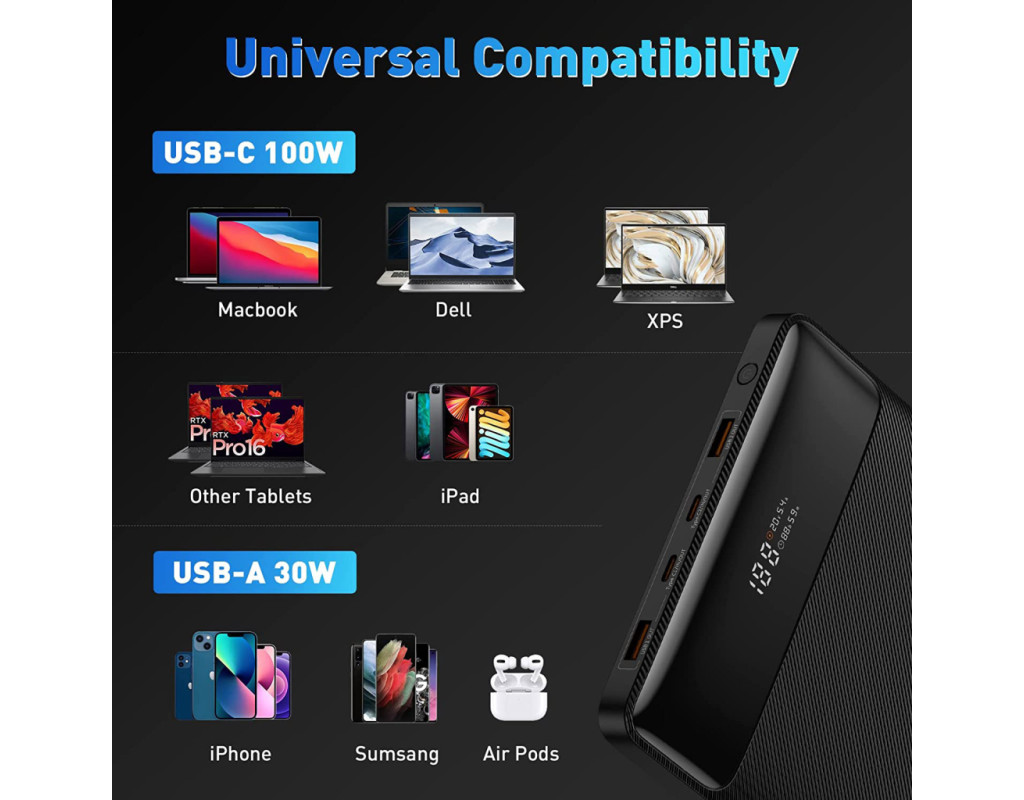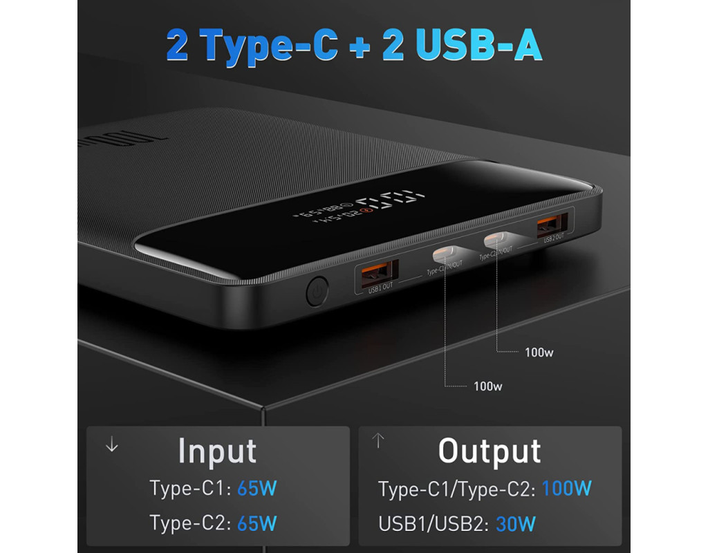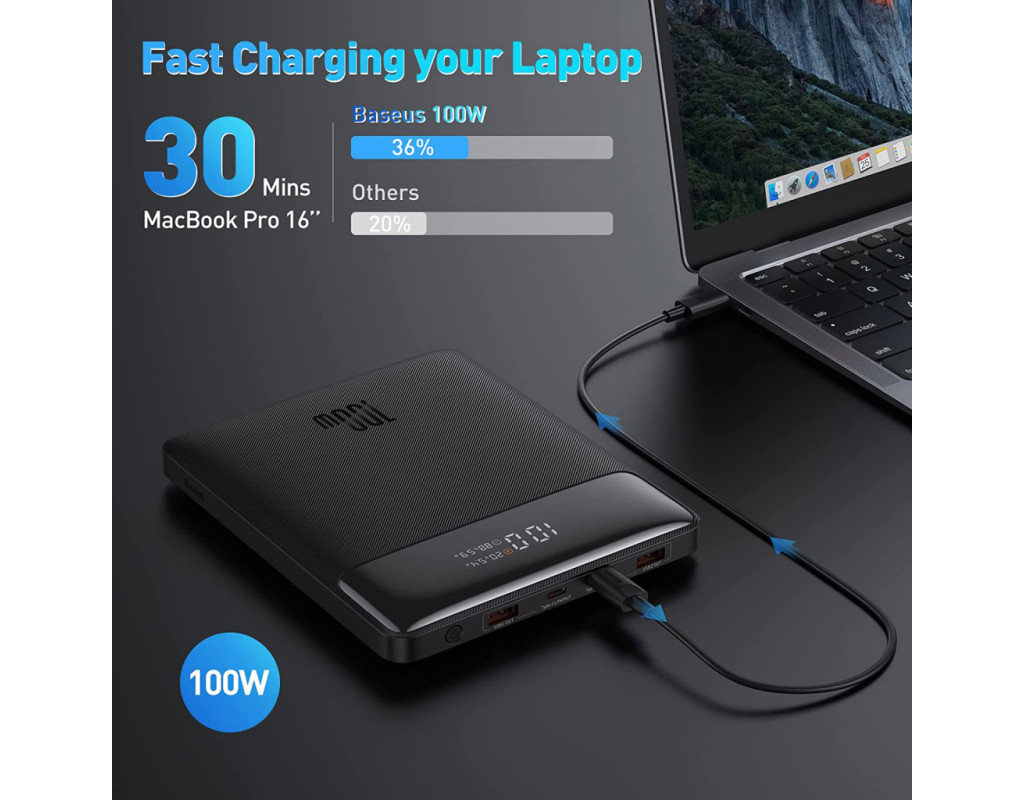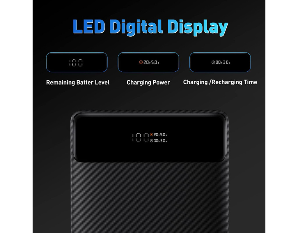 Power bank Baseus Blade Digital Display 20000 mA*h 100W 5A з технологією QC4.0 + PD3.0 - це потужна батарея з великою місткістю 20000 mA*h, стильним зовнішнім виглядом і численними портами, що дають змогу одночасно відновлювати енергію декількох пристроїв. Даний power bank Baseus підтримує стандарти швидкої зарядки, такі як: Quick Charge 4.0 3.0, Huawei SCP, FCP, Samsung AFC, Power Delivery до 100W. Завдяки цьому за допомогою Powerbank Baseus можна заряджати не тільки смартфони, планшети, смарт-годинник і навушники, а й ноутбуки таких виробників, як Apple, Dell, Lenovo. Всього у нього чотири порти: два порти USB-A і два порти USB-C. Компактний, елегантний, інноваційний і багатофункціональний блок живлення виготовлений із високоякісних матеріалів. Вбудовані порти для заряджання Зовнішній акумулятор Baseus Blade Digital Display 20000mAh 100W 5A з технологією QC4.0 + PD3.0 обладнаний 4 портами. 2 роз'єми USB Type-C PD можна використовувати для зарядки павербанка і 4 для мобільних пристроїв (2 х USB Type-A QC4.0, 2 х USB Type-C PD 3.0). Роз'єми USB Type-C PD можна використовувати для заряджання ноутбука, макбука, смартфона, планшета або бездротової колонки, а також для швидкого заряджання самого акумулятора. Така наявність портів дає змогу під'єднати до 4 гаджетів одночасно. Батареї потужністю 20000 mA*h вистачить для заряджання, наприклад: до 4.5 рази iPhone 13 або до 3 разів HUAWEI P40 Pro або до 3 разів Xiaomi 10 Pro. Power bank Baseus підтримує технологію швидкого заряду з потужністю 65 W за допомогою порту USB Type-C. Ви не встигнете помітити, як пристрій знову буде готовий до роботи. З такою ємністю батареї не потрібно турбуватися про те, що Ви залишитеся без телефону під час поїздки. Швидка зарядка QC 3.0 Через USB порт помаранчевого кольору здійснюється зарядка за стандартом Quick Charge 3.0. Завдяки цьому гаджети заряджаються майже вчетверо швидше за звичайне заряджання і на 12 відсотків швидше QC 2.0. Зверніть увагу, що пристрій, який заряджається, також має підтримувати Quick Charge 3.0. Якщо ні - у цьому разі заряджання здійснюватиметься у звичайному режимі. |