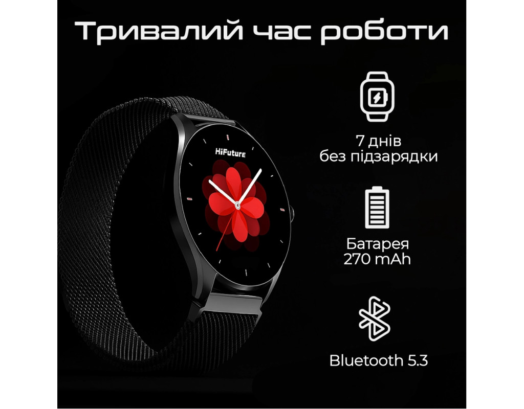 | Смарт-годинник HiFuture Aura 2 Silver — це витончений аксесуар, що підкреслить вашу унікальність та стиль. Завдяки круглому дизайну та елегантному корпусу з металу, він поєднує в собі сучасні технології з незмінною класикою. AMOLED дисплей діагоналлю 1.32 дюйма відрізняється вражаючою чіткістю та насиченістю кольорів, що робить перегляд інформації на екрані справжньою насолодою. Який би стиль ви не вибрали - повсякденний або офіційний, цей смарт-годинник стане ідеальним доповненням. Завдяки підтримці Bluetooth 5.3, HiFuture Aura 2 завжди на зв'язку, забезпечуючи стабільність та якість сигналу без переривань. Сповіщення про дзвінки та повідомлення тепер завжди під рукою, що дозволяє не випускати важливі події з поля зору. Зручний інтерфейс робить управління функціями простим і зрозумілим. HiFuture Aura 2 стане незамінним помічником для тих, хто прагне тримати руку на пульсі свого здоров’я. Завдяки вбудованим датчикам, ви зможете відстежувати пульс, кроки та якість сну в режимі реального часу. Годинник підтримує безліч спортивних режимів, що дозволяє вибрати оптимальну програму тренувань для досягнення найкращих результатів. Ця функція особливо актуальна для активних людей, які дбають про своє здоров'я. Завдяки рівню захисту 1 ATM, годинник не боїться дощу, бризок води чи випадкового занурення. Він стане надійним супутником як під час прогулянок міськими вулицями, так і під час тренувань на свіжому повітрі. Ємнісна батарея на 270 mAh забезпечує до 7 днів роботи без підзарядки, що дозволяє насолоджуватися свободою дій без зайвих турбот. У комплекті з HiFuture Aura 2 ви знайдете магнітний зарядний кабель, додатковий силіконовий ремінець та інструкцію користувача. Завантажте додаток “НіFuture” на ваш смартфон для управління годинником та налаштування повідомлень. Синхронізація з додатком допоможе вам відстежувати всі показники та використовувати максимум можливостей. Цей елегантний смарт-годинник — вибір для тих, хто цінує якість та інновації. Незалежно від вашого стилю життя, HiFuture Aura 2 стане вашим вірним супутником у повсякденних справах. |