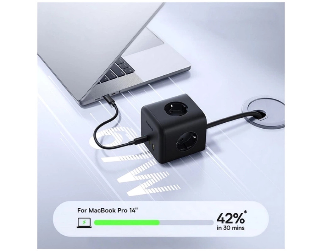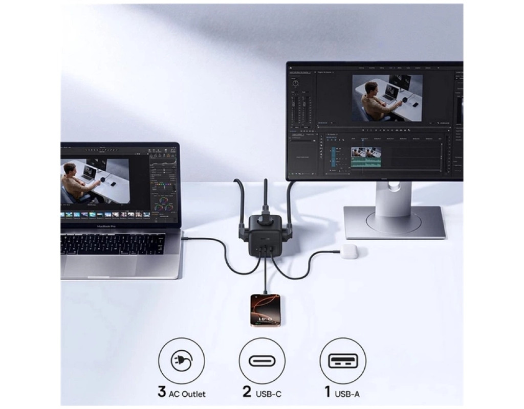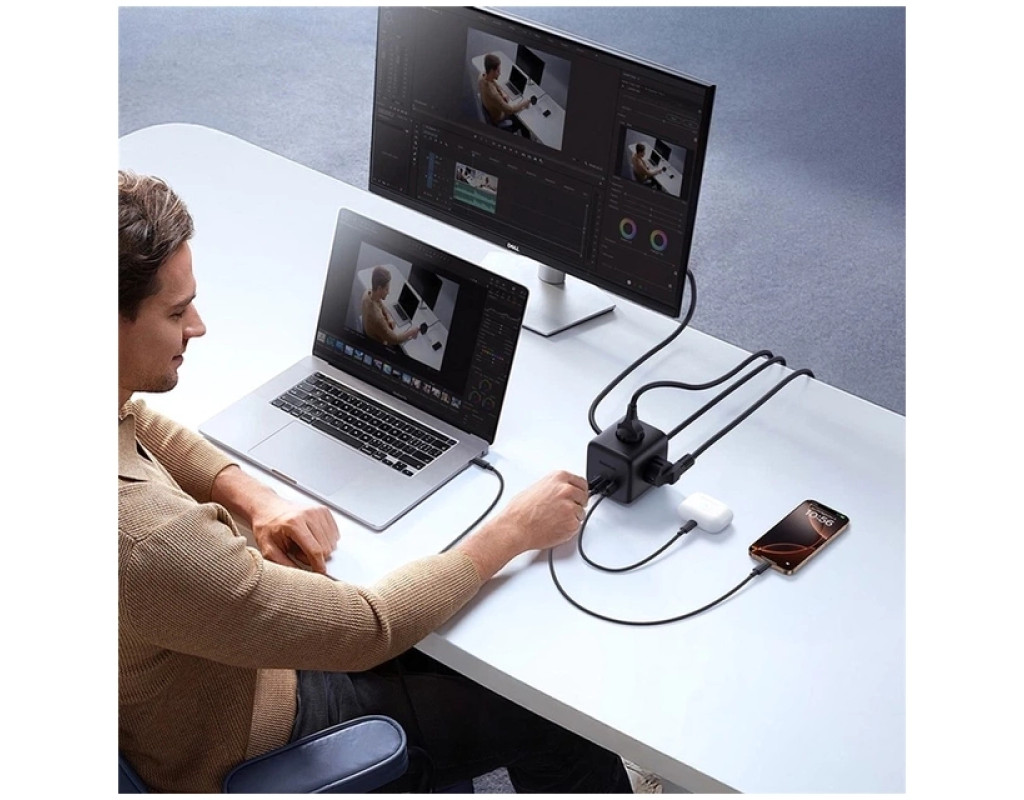 - Висока потужність 67 Вт: Порти USB та USB-C підтримують технології швидкої зарядки, такі як Power Delivery (PD), що дозволяє заряджати потужні пристрої, включаючи ноутбуки, з максимальною ефективністю.