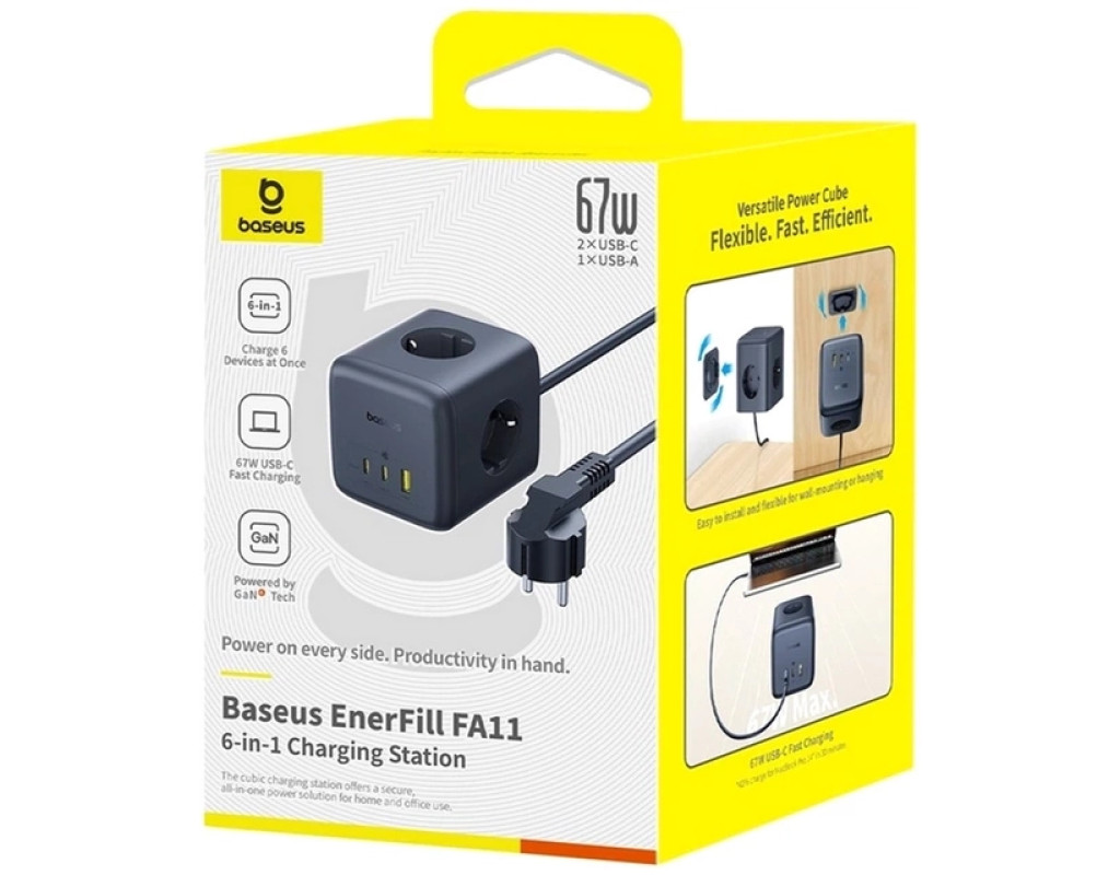 Мережевий фільтр Baseus EnerFill FA11 Cube - це ідеальне поєднання потужності, безпеки та стилю, яке допоможе підтримувати порядок та ефективно заряджати ваші пристрої. |