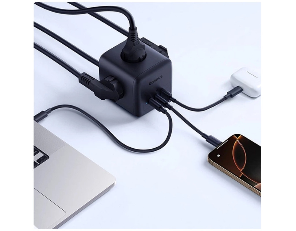 Мережевий фільтр Baseus EnerFill FA11 Cube Power Strip - це інноваційне рішення для ефективного та безпечного живлення ваших пристроїв. Цей компактний кубічний фільтр поєднує в собі 3 стандартні розетки змінного струму, 1 порт USB та 1 порт USB-C, що дозволяє одночасно підключати до 5 пристроїв. З загальною потужністю зарядки до 67 Вт, він ідеально підходить для швидкого живлення ноутбуків, планшетів, смартфонів та іншої електроніки.