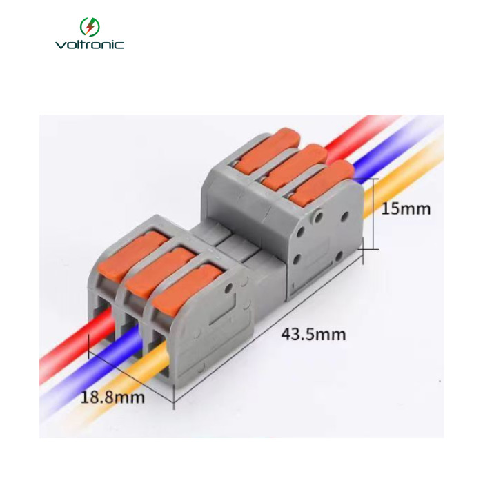 | Клема роз'ємна з натискними затискачами 3-провідна DF-2604D, 3-pin, 250V, 32A, 0.2-4.0mm2, 18.8*43.5*15mm, сіра |