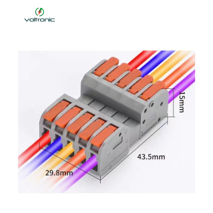 | Клема роз'ємна з натискними затискачами 5-провідна DF-2604D, 5-pin, 250V, 32A, 0.2-4.0mm2, 29.8*43.5*15mm, сіра |