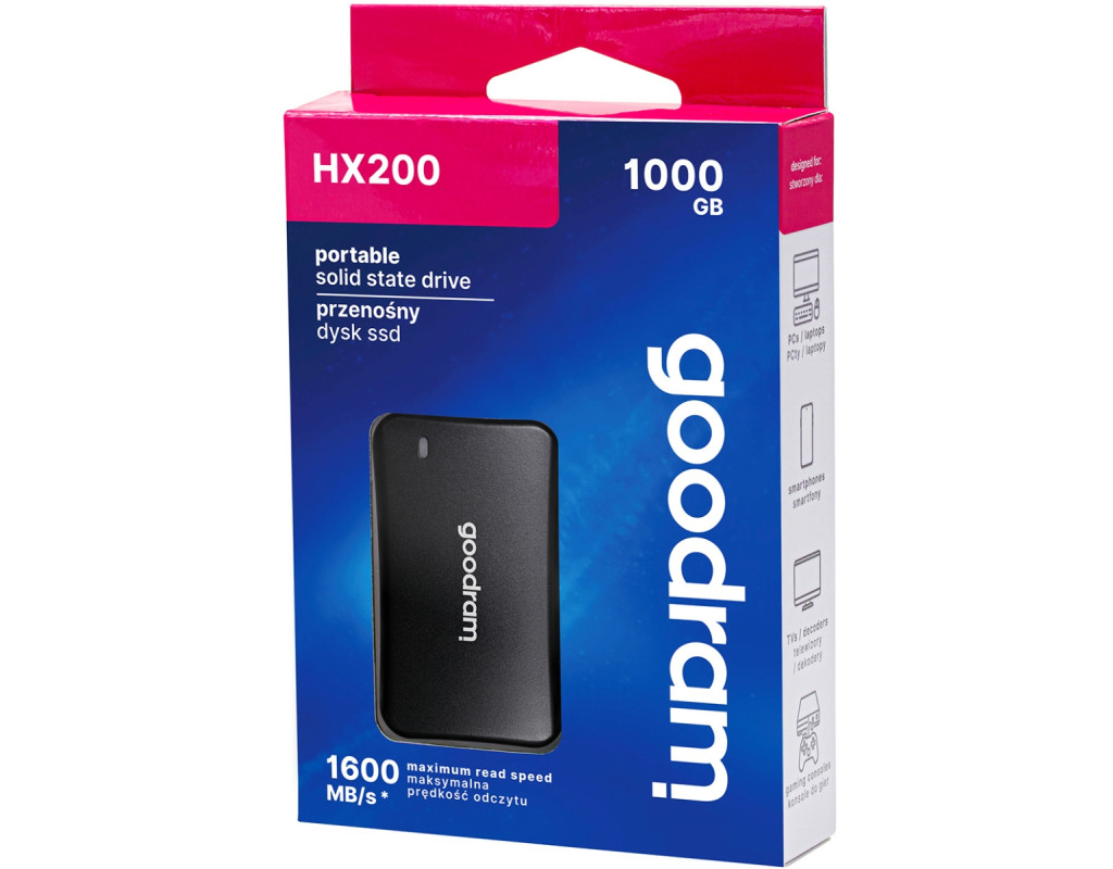 | SSD external, USB 3.2 Gen2 Type-C 1Tb, GoodRAM HX200, Black, чорний, Retail |