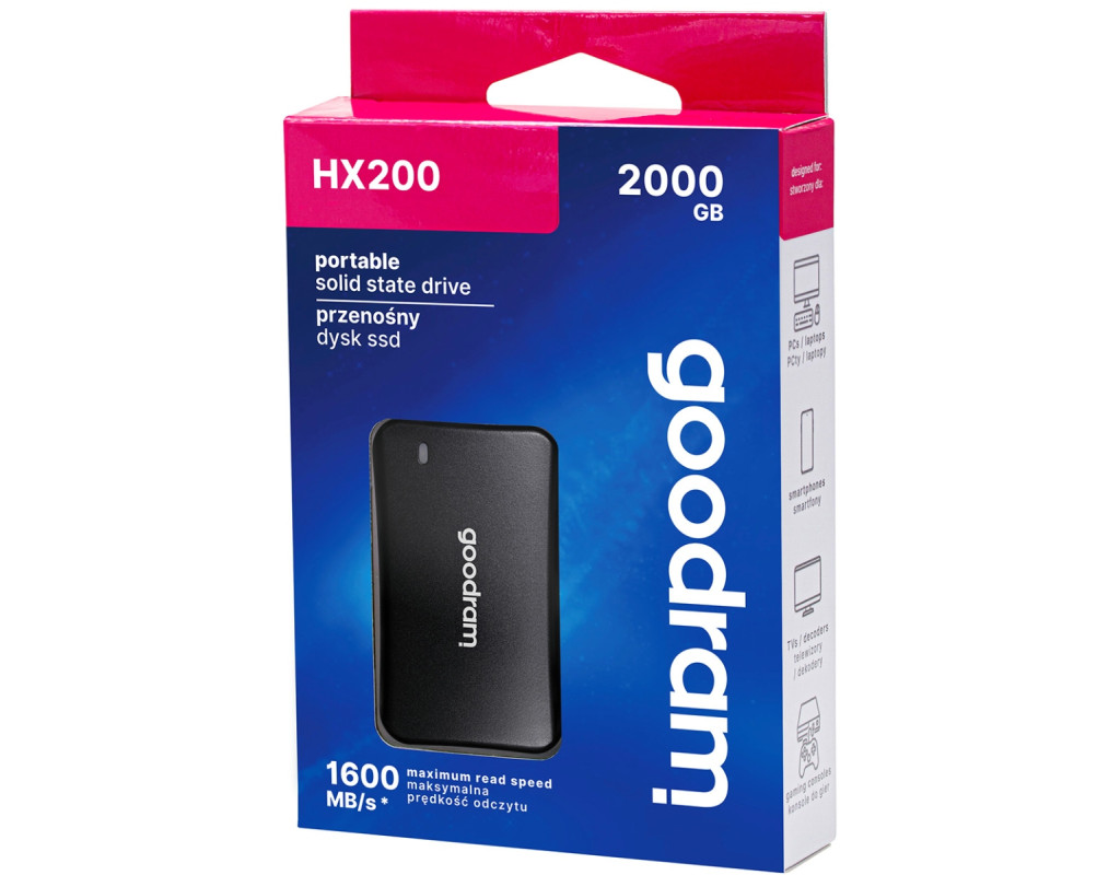 | SSD external, USB 3.2 Gen2 Type-C 2Tb, GoodRAM HX200, 2x Type-C, Black, чорний, Retail |
