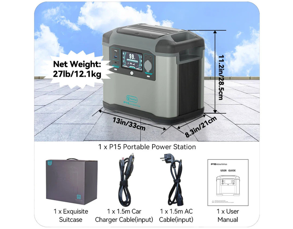 Flashfish P15 – це потужна зарядна станція від Flashfish, що при порівняно невеликих габаритах має ємність 278 100 мА⋅год. Вона незамінна у заміській поїздці чи просто як резервне джерело живлення у разі відключення електроенергії, адже однією з головних переваг цієї зарядної станції є чиста синусоїда на виході. Це дозволяє підключити усі основні прилади до Flashfish P15 та не переживати, що зненацька залишитесь без світла та необхідної вам техніки. Flashfish P15 — портативна електростанція вагою 12. 1 кг з ручкою для зручного переносу та вбудованим сховищем, де можна зберігати перехідники, кабелі та інші невеликі предмети. Ємність Flashfish P15 складає 1008 Вт⋅год або 278 100 мА·год, а кількість портів дозволяє заряджати до 8 пристроїв одночасно, включно із тими, що працюють від мережі 220 В. Переваги та можливості Flashfish P15: