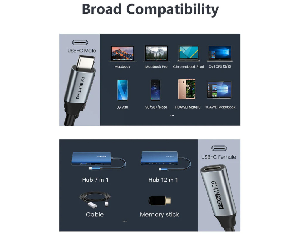 Кабель USB Type-C (M) - USB Type-C (F), 5 Гбіт/с, 60 Вт, 4K при 60 Гц, 0,5 м Особливості: Кабель забезпечує швидку передачу даних 5 Гбіт/с, підтримує швидку зарядку потужністю 60 Вт і виводить відео- та аудіосигнал. Це кабель живлення і багатопортовий подовжувач, призначений для захисту роз'ємів вашого комп'ютера або смарт-пристрою від зносу. Роздільна здатність відео досягає 4K@60Hz (3840x2160 пікселів). Надзвичайно міцний кабель, нікельовані роз'єми. Технічні дані: Роз'єм 1: USB Type-C (M). Роз'єм 2: USB Type-C (F). USB-версія: 3.0. Ген 1. Максимальна пропускна здатність даних: 5 Гбіт/с. Роздільна здатність: 4K при 60 Гц, 3840x2160. Зарядка: 60 Вт, 20 В/3 А. Матеріал кабелю: TPE, зовнішній діаметр 4,3 мм. Матеріал корпусу: алюміній. Колір кабелю: чорний. Довжина: 0,5 м. Розмір: 70x110x10 мм. Вага: 18 г. Розмір в упаковці: 80x155x20 мм. Вага в упаковці: 32 г. Гарантія: 12 місяців. Сумісні комп'ютери: Huawei P20. Huawei Mate RS. Huawei Mate 9 / 10 / P10. Huawei Nova. Huawei Honor V8 / V9 / V10. Huawei Honor 8/ 9/ 10. Xiaomi 8/ 6. Xiaomi MIX / MIX2. Xiaomi Note 2/ 3. Xiaomi 5/ 5S. Samsung Galaxy S9/ S8. Samsung Galaxy Note8. Samsung Galaxy C9/ Pro. Samsung Galaxy C7 Pro. Oppo R17. Oppo Find X. Vivo Nex. Meizu E3. Meizu Pro/ Plus/ Pro6/ 6S/ Plus/ Pro 5. Meizu X. Meitu V8/ M8s/ T8/ M6/ M6s/ M8. Сумісні смартфони: Apple MacBook 2016. Apple MacBook 2017. Apple MacBook 2018. Apple MacBook 2019. Apple iPad Pro 2018/ 2019. Xiaomi Pro Notebook. Xiaomi Air Notebook. Dell XPS 15. Dell XPS 13. Dell XPS Privilege Edition. HP EliteBook Folio G1. |