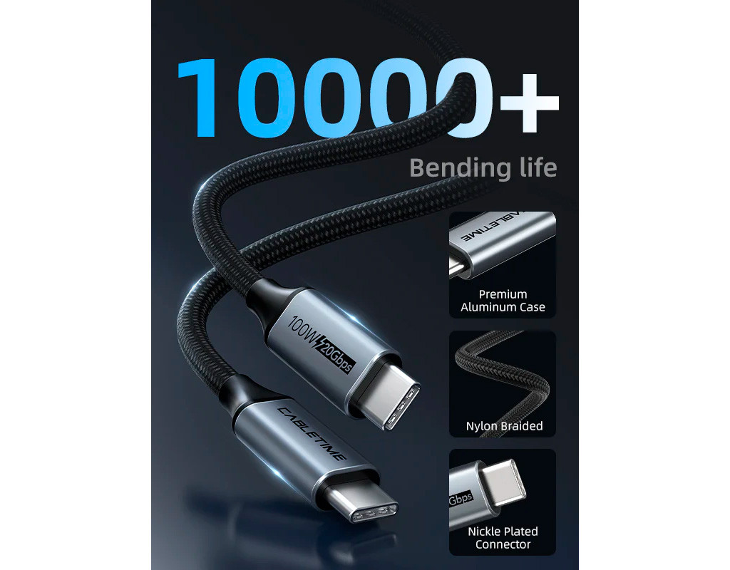 Аудіо та відеокабель підтримує стандарт нового покоління USB3.1 Gen2, забезпечуючи швидкість передавання даних до 20 Гбіт/с, передавання відео до 4K/60 Гц і заряджання 100 Вт 5А. Кабель можна використовувати з усіма пристроями, що підтримують USB - Type C. Особливості: Стійкість до поломок і розривів, не пошкоджується після багаторазового використання. Високоякісна потовщена мідна жила. Вбудований інтелектуальний чип E-Mark забезпечує стабільну і більш високу швидкість зарядки. Характеристики: Роз'єм 1: USB Type-C (M). Роз'єм 2: USB Type-C (M). Версія USB: 3.1. Максимальна швидкість передачі даних: 20 ГБ/с. Роздільна здатність: 4K. Макс. частота кадрів: 60 Гц. Зарядка: 100 Вт/ 20 В/ 5 А. Тип: коаксіальний. Матеріал: алюмінієвий корпус + нікельовані з'єднання + дріт у нейлоновому обплетенні. Довжина: 2 м. Колір: чорний. Розмір: 75x130x15 мм. Вага: 62 г. Розмір упаковки: 80x160x20 мм. Вага в упаковці: 75 г. Виробник: Cabletime. Гарантія: 12 місяців. |