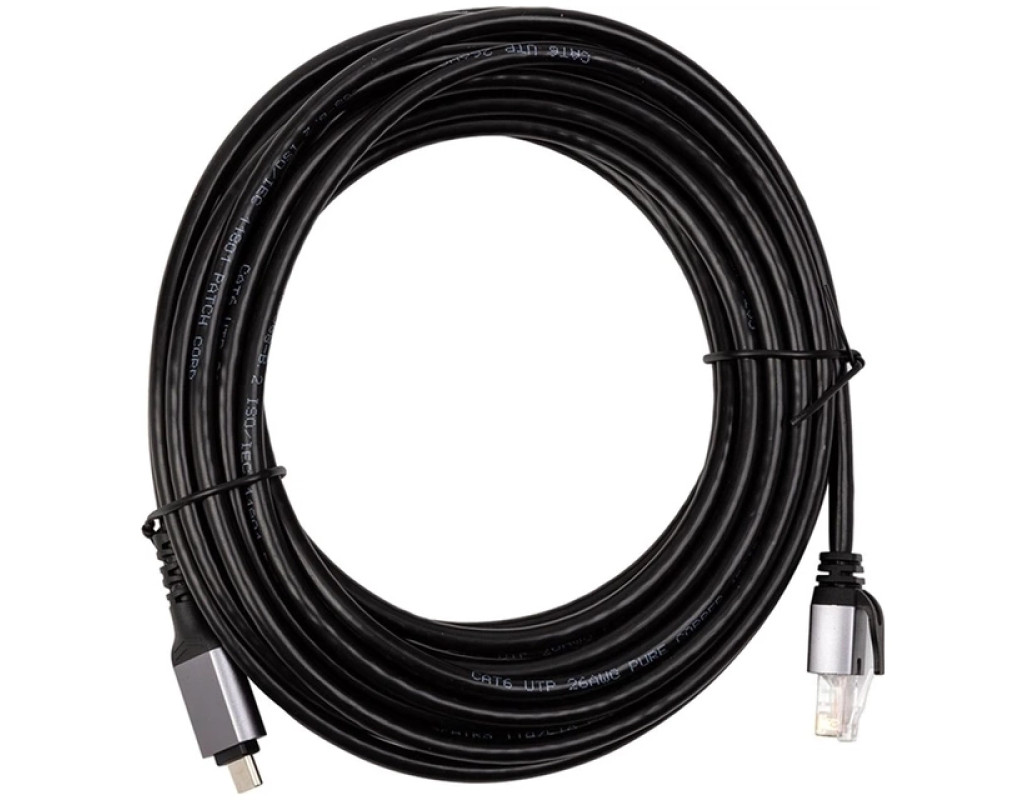 Кабель-перехідник USB Type-C - UTP CAT6 RJ45 підтримує пряме підключення пристроїв до Gigabit Ethernet. Особливості: Підтримує швидкості Ethernet 10/100/1000 Мбіт/с для різних мережевих конфігурацій. Легко підключайте пристрій до дротової мережі через роз'єм USB Type-C. Забезпечує швидкий перегляд веб-сторінок і безперебійну передачу даних. Конструкція Plug-and-Play: насолоджуйтеся миттєвим підключенням без необхідності встановлення драйверів. Кабель-перехідник дозволяє користуватися Інтернетом за відсутності з'єднання Wi-Fi. Він легко підключає сучасні ноутбуки без портів Ethernet. Сумісність з Thunderbolt 3/4, для MacBook Pro/Air, iPad Pro, iPhone 15 серії, Galaxy, смартфонів, ноутбуків, ПК тощо. Надійна конструкція: кабель виготовлений із суцільної голої міді, нікельовані роз'єми, корпус з алюмінієвого сплаву та гнучка оболонка для довговічності. Характеристики: Роз'єм 1: USB Type-C (M). Роз'єм 2: 8-контактний штекер RJ-45 (M) (вгору - 4 контакти, вниз - 4 контакти). Версія USB: 3.0. Тип кабелю: UTP CAT6. Технологія: 8P8C. Швидкість передачі даних: 10/100/1000 Мбіт/с. Матеріал: корпус з алюмінієвого сплаву, оболонка з ПВХ, нікельовані роз'єми. Характеристики кабелю: суцільна гола мідь 26AWG. Зовнішній діаметр: 5.0 мм. Довжина: 7.5 м. Колір: сірий. Розмір в упаковці: 260x290x30 мм. Вага в упаковці: 240 г. Гарантія: 12 місяців. |