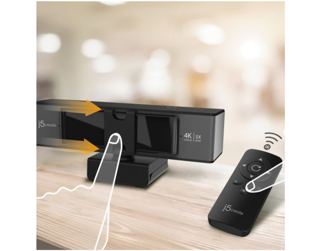 | Веб-камера USB 4K ULTRA HD з 5-кратним цифровим зумом і пультом дистанційного керування підтримує функцію ePTZ (електронне панорамування, нахил і зум) за допомогою пульта дистанційного керування. Вона підтримує роздільну здатність 4K при 30 Гц і оптимізує відеодзвінки за допомогою 5-кратного цифрового зуму, що робить її ідеальною для зустрічей у великих конференц-залах, а також для використання однією особою. Крім того, веб-камера має вбудовану функцію поліпшення якості зображення при слабкому освітленні, вбудовані подвійний високоякісний мікрофон та два способи відключення об'єктива для забезпечення конфіденційності. Вона оснащена кабелем USB-C і перехідником на USB Type-A для роботи як зі старими, так і з новими пристроями. Особливості:
