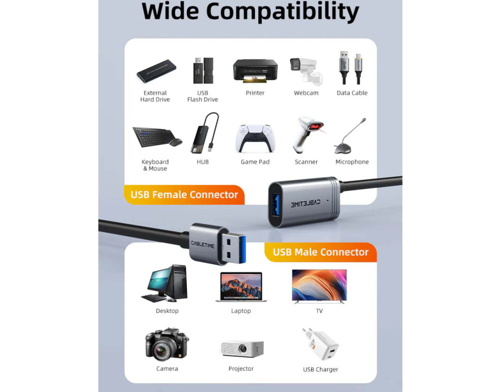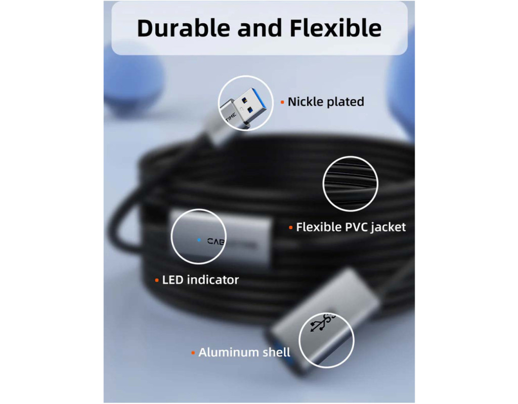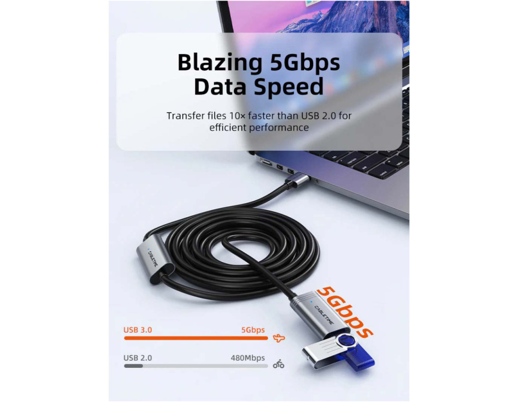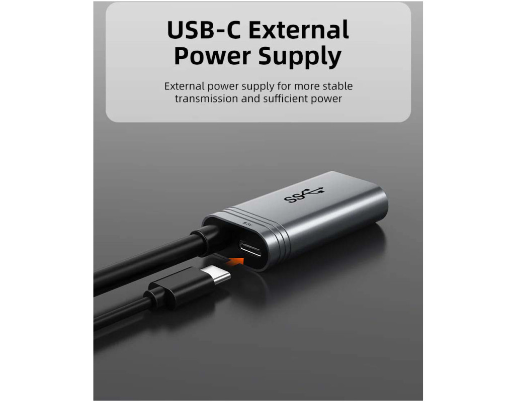 Активний подовжувач CABLETIME USB 3.0 має вбудований підсилювач сигналу для стабільної передачі даних на відстані до 20 метрів. Завдяки блискавично швидкій швидкості 5 Гбіт/с, підтримці живлення USB-C та високоякісним матеріалам він ідеально підходить для VR-гарнітур, веб-камер, принтерів тощо. Просто підключіть та працюйте — жодних драйверів чи налаштування не потрібно. • Підтримує передачу даних на великі відстані до 20 метрів з активним посиленням сигналу. • Забезпечує високошвидкісну передачу даних через USB 3.0 зі швидкістю до 5 Гбіт/с. • Живлення від зовнішнього блоку живлення USB-C 5 В/1 А для стабільної роботи. • Оснащений високопродуктивним чіпсетом GL3510 для покращеної цілісності сигналу. • Містить світлодіодний індикатор для відображення робочого стану. • Поставляється з 1-метровим кабелем USB-A - USB-C для підключення зовнішнього живлення. • Ідеально підходить для віддаленої роботи, відеоконференцій та VR-ігор. • Конструкція «підключи та працюй» — драйвер не потрібен для зручного використання. • Має міцний алюмінієвий корпус та гнучку ПВХ-оболонку для кращого захисту та довговічності. • Створений, щоб витримувати часте підключення та відключення зі збільшеним терміном служби. • Забезпечує безперебійну передачу даних навіть на максимальній відстані завдяки технології активного повторювача. • Сумісний з широким спектром пристроїв, включаючи ноутбуки, настільні комп'ютери, веб-камери, камери, принтери, жорсткі диски та VR-гарнітури. Характеристики: Вхід: USB A (Male). Вихід: USB A (Female). Живлення: USB C 5V1A. Швидкість передачі: 5Gbps. Чипсет: GL3510. Матеріал: Алюмінієвий корпус + ПВХ-оболонка. Довжина: 10 м. Розмір в упаковці: 210x290x50 мм. Вага в упаковці: 485 г. Гарантія: 12 місяців. |
