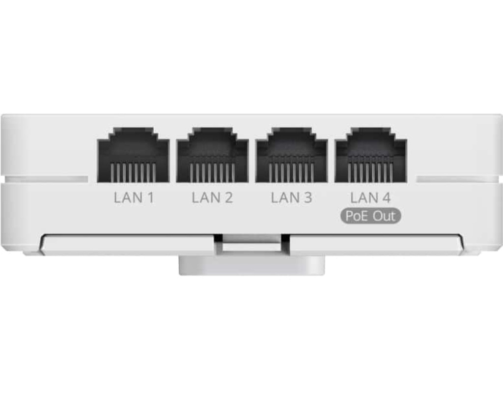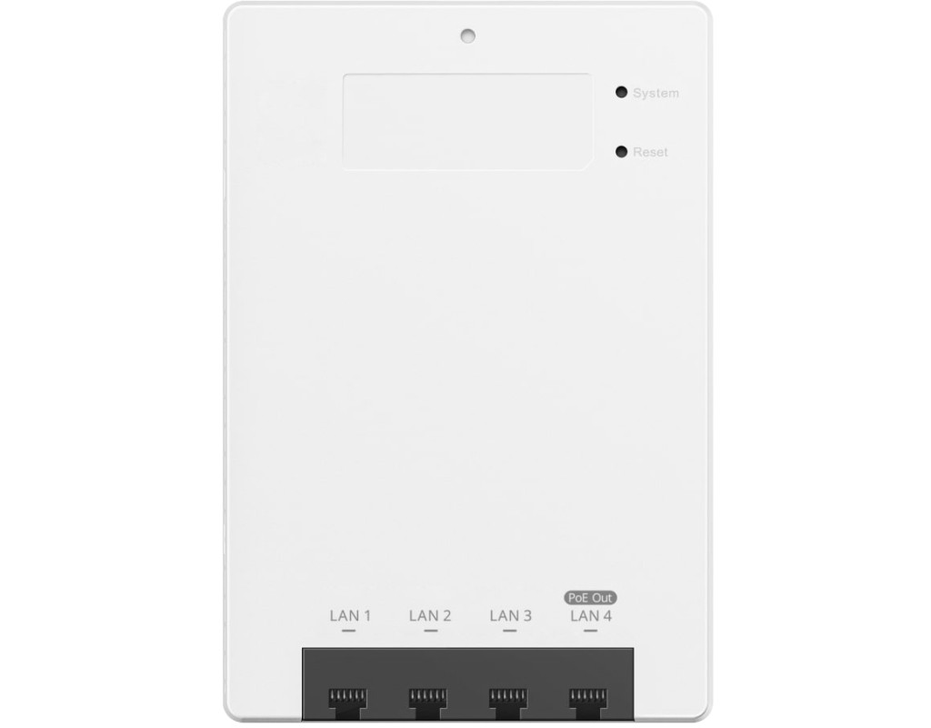 Швидкості Wi-Fi 6 AX3000: максимальна 2401 Мбіт/с у діапазоні 5 ГГц + максимальна 573 Мбіт/с у діапазоні 2,4 ГГц 4 порти LAN 1GE, один з яких підтримує PoE Out Надтонка конструкція завтовшки 23,5 мм (0,93 дюйма) Сумісність з розподільними коробками 86 мм, що відповідають стандартам ЄС та США. Централізоване керування через Ruijie Cloud |