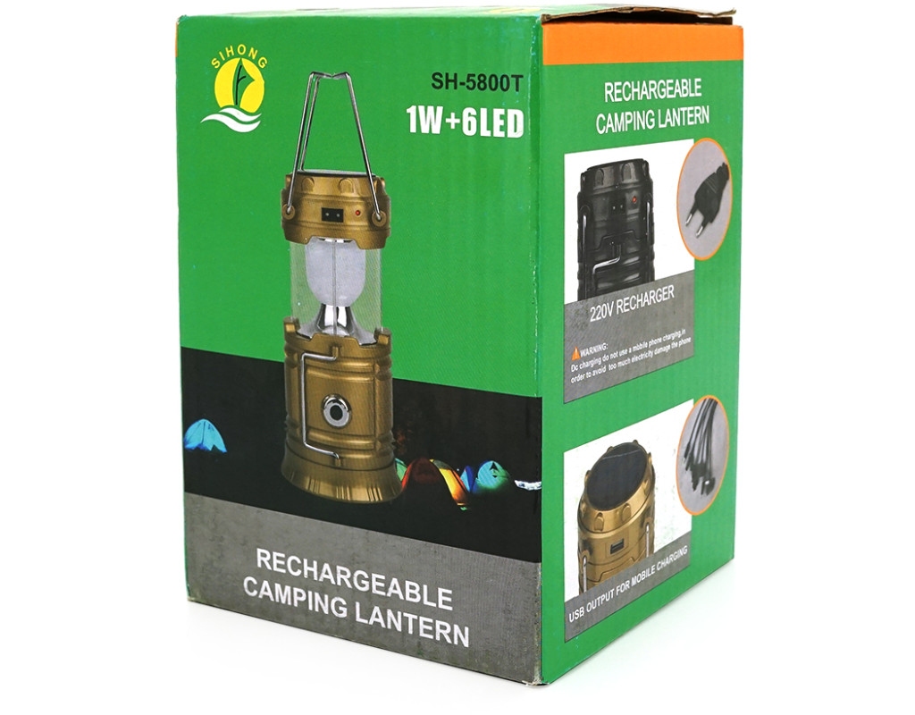 | Тип ліхтаря: кемпінговий Виробник: Voltronic Модель: SH-5800T Кількість режимів: 1+1 Спецрежими: ні Потужність: 3W Дальність: 100 м Час роботи від батареї: 4 / 6 годин Час зарядки: 8-10 годин Діаметр голови мм: 80 Герметичність: IP44 Місткість акумулятора мАг: 800 / 4V Метод заряджання: кабель 200В+Solar USB вихід для заряджання мобільних пристроїв; Матеріал корпусу: пластик + пластикова оптична лінза Колір корпусу: чорний Розміри: 140 * 80 * 95 мм; Вага: 240гр Комплектація: ліхтар, кабель 220В |