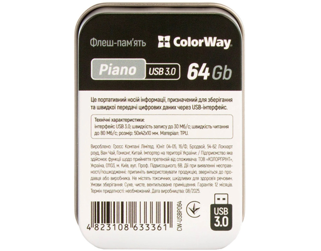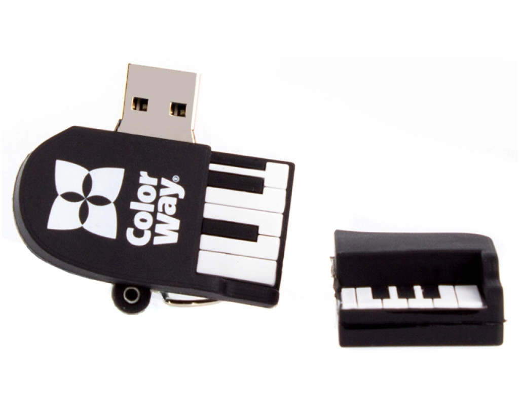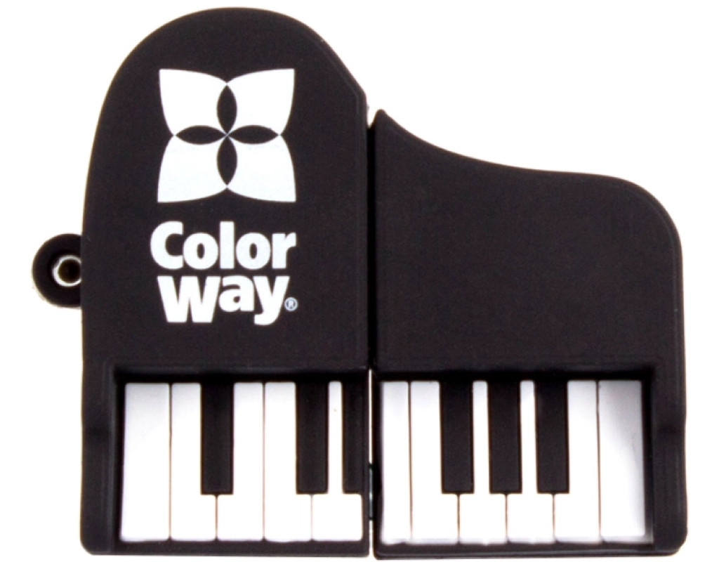 Флеш-накопичувач ColorWay Piano – стильний та оригінальний аксесуар для тих, хто цінує індивідуальність. Виконаний у формі мініатюрного рояля, він поєднує практичність і креативний дизайн. М’який гумовий корпус приємний на дотик та захищає накопичувач від ударів і подряпин. Підтримує стандарт USB, сумісний з комп’ютерами, ноутбуками, ТВ та іншими пристроями.